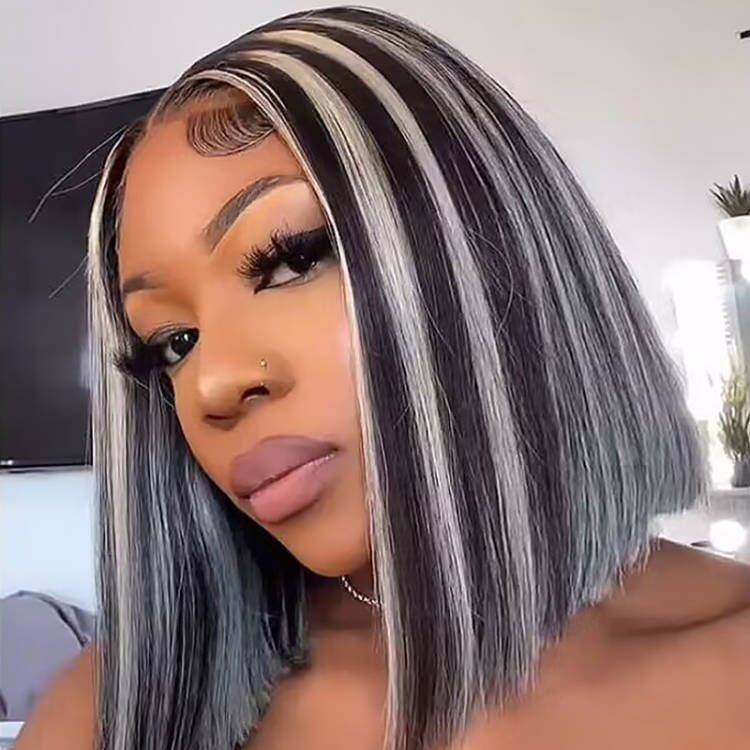 Sterly Grey Highlight Bob Wig Colored Straight 4x4 13x4 Bob Human Hair Wigs