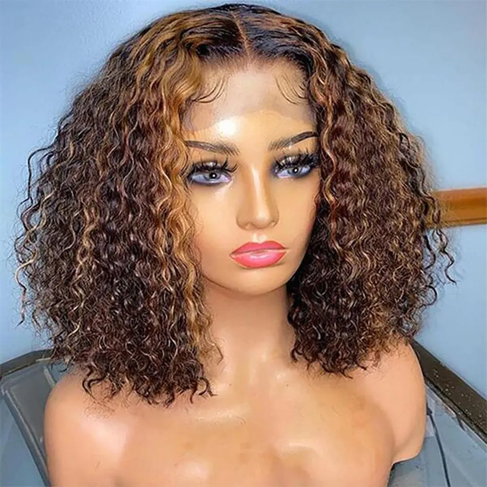 Sterly Mix Color Brown Curly Bob Wig Affordable 13X4 Highlight Frontal Lace Wig