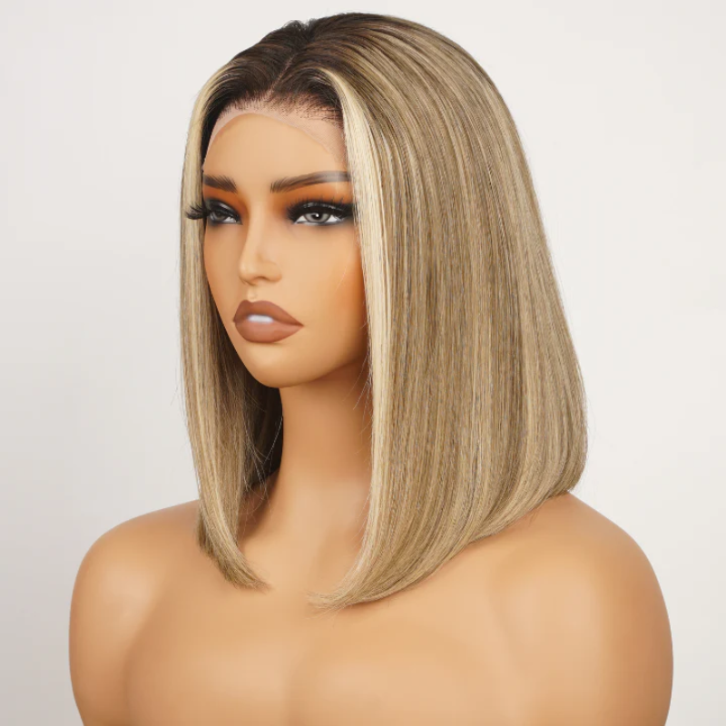 Sterly Ombre Ash Blonde Straight Short Bob Wigs 13×4 Transparent Lace Frontal Wig