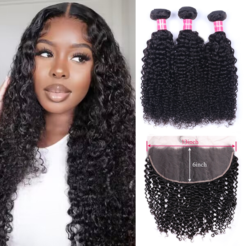 • Sterly Raw Curly Bundles With 13X6 Lace Frontal Human Hair Bundles With Frontal