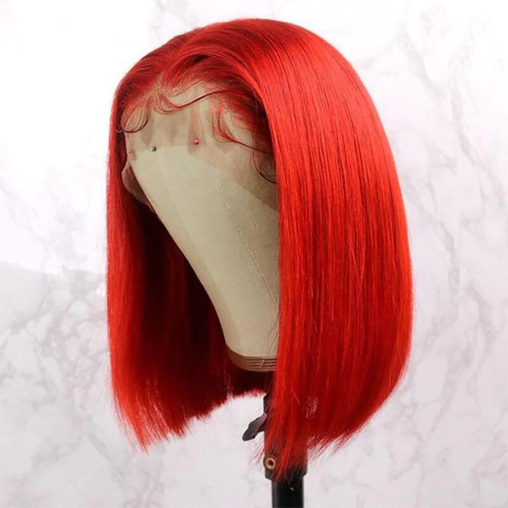 Sterly Red Wig Straight 13x4 Lace Frontal Colored Short Bob Human Hair Wigs