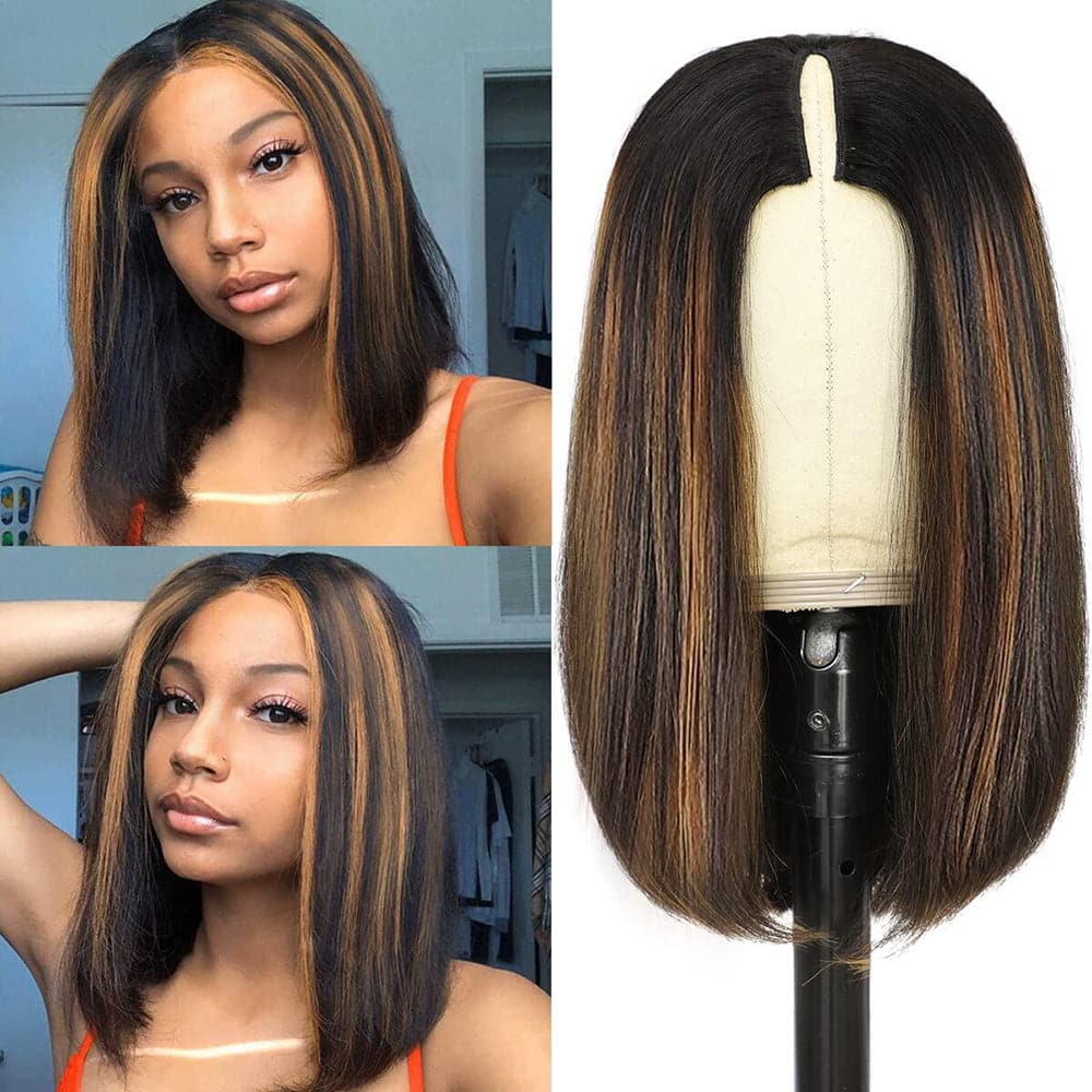 Sterly Straight Ombre V Part Bob Wig No Leave Out #FB30 Highlight Upgrade Thin U Part Wig No Glue