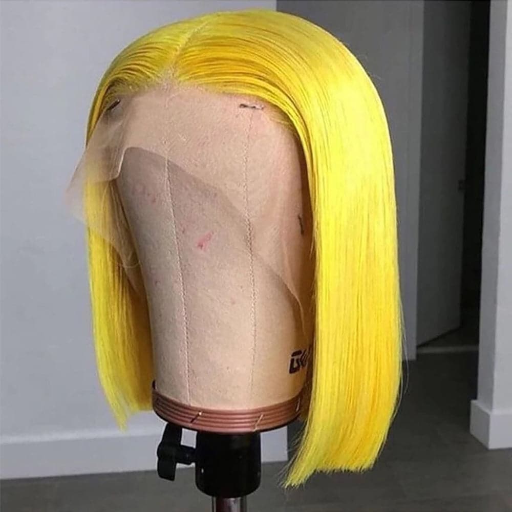 Sterly Yellow Wig Straight Short Bob Human Hair 13x4 Transparent Lace Front Wig