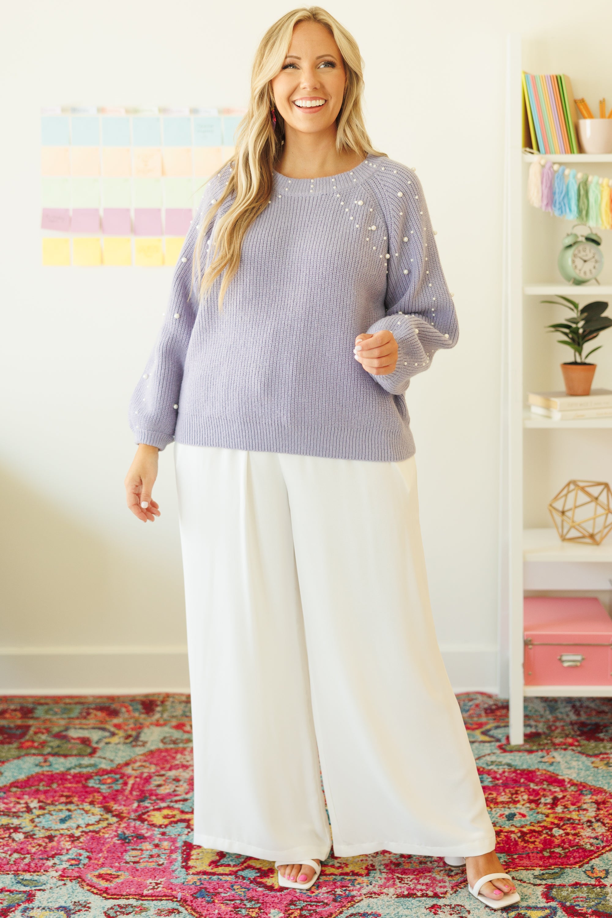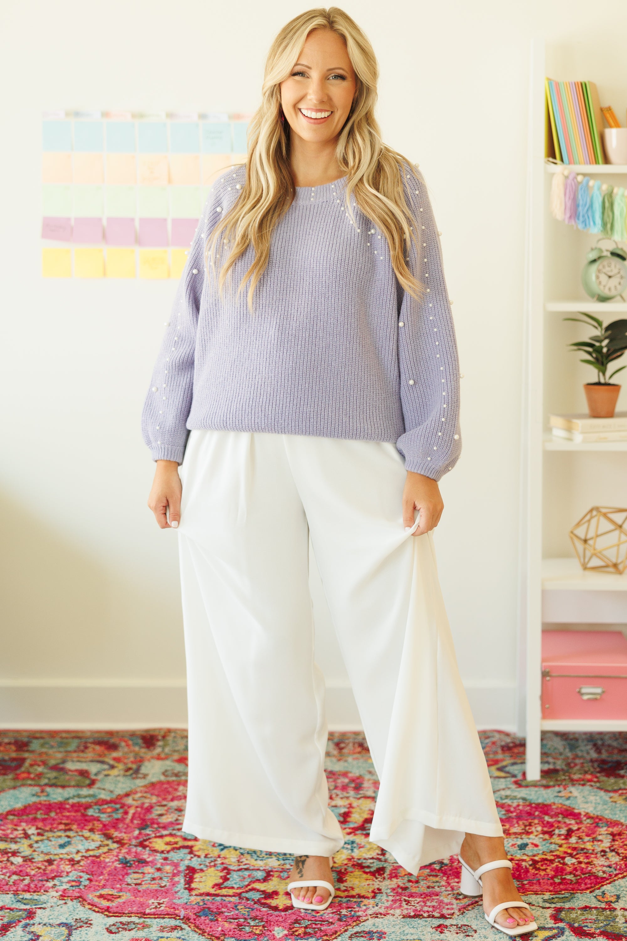 This sweater is perfect for everyday wear! It features a pretty lavender color, pearl detailing, and a flattering fit that is sure to make you look and feel great! Crafted with utmost comfort in mind, the cozy fabric will make you never want to take it off!100% Polyester