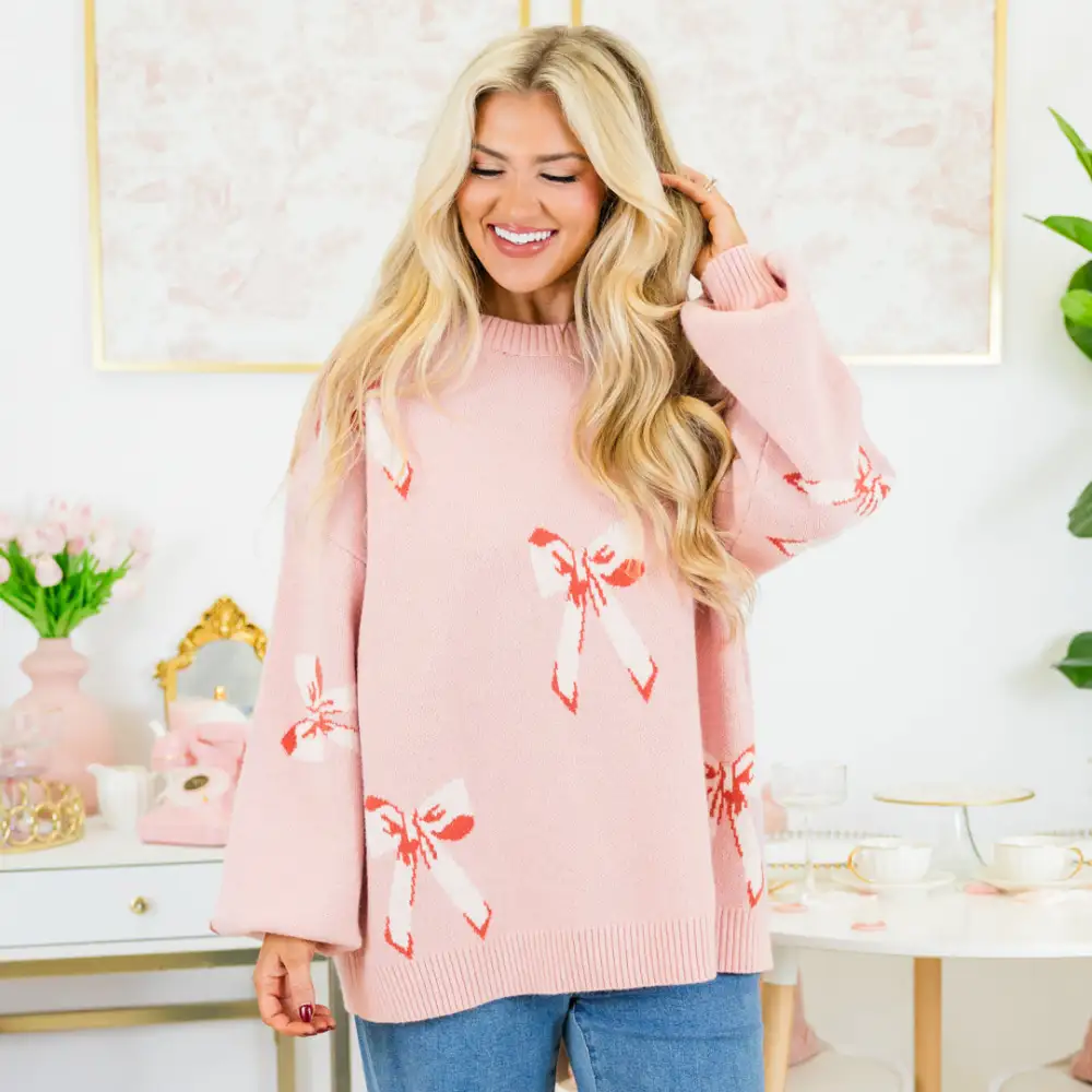 Add some pizzazz to your wardrobe with our Tie The Knot Sweater! This playful crew neck sweater features adorable bow accents, giving any outfit a touch of whimsy! Keep warm and stylish with this fun and quirky sweater!