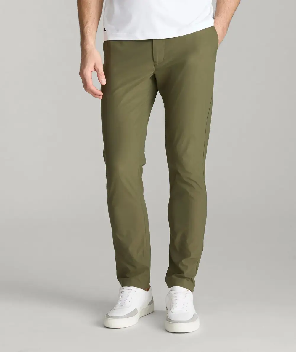 Rain or shine, our Traveler Tech Pants are built to keep up with your busy schedule. The quick-drying, wrinkle-fighting fabric is essential for looking great in a flash, and the water-repellent finish keeps you dry and polished in any setting. You’ll love the streamlined fit—slimmer through the hips and thighs and tapered below the knee. Deep pockets hold all your stuff, and two-way stretch makes these pants a must-have for the golf course, the office, and everywhere in between.