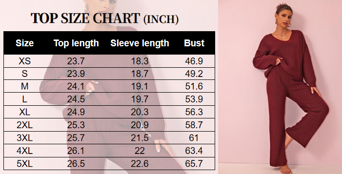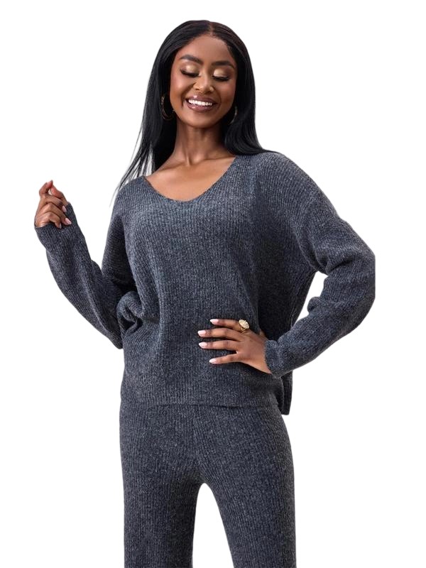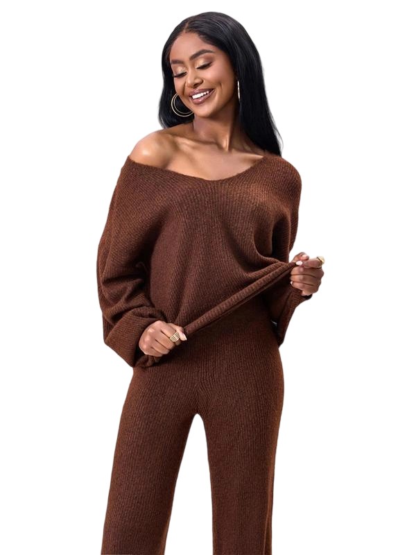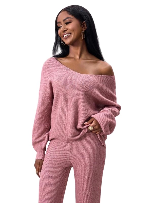 Set Composition: Women's 2-piece knit set—long sleeve drop shoulder sweater + matching pants, for a coordinated look.