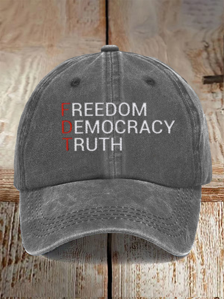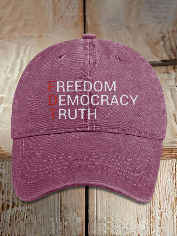 Unisex Distressed Washed Cotton FDT Freedom Democracy Truth Hat