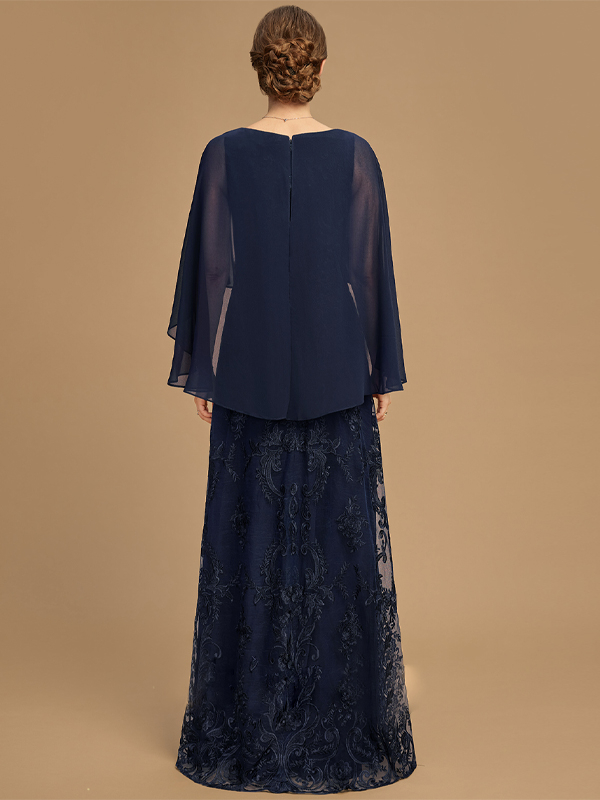 V-neck Lace Solid Color Mesh Gown Maxi Dress