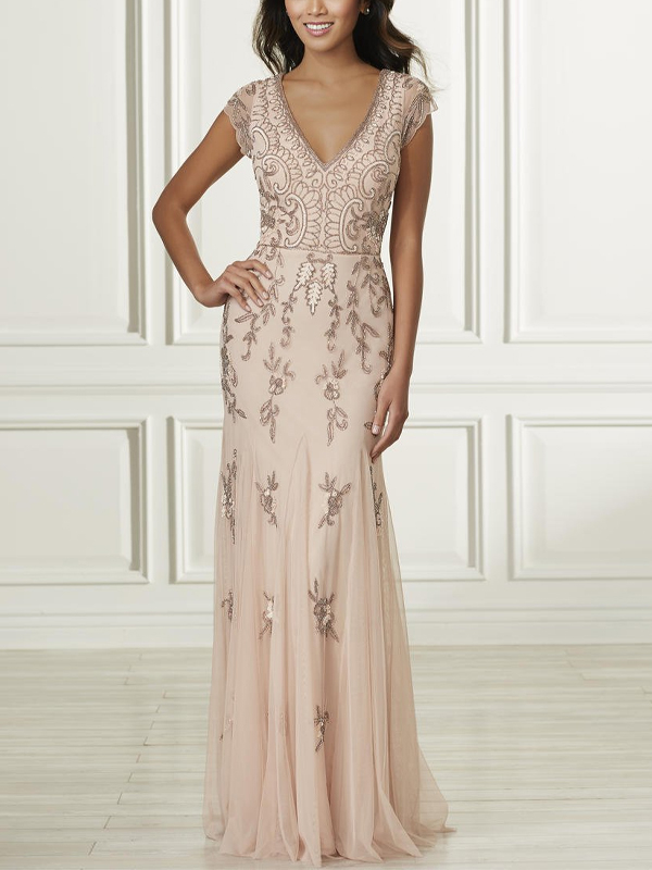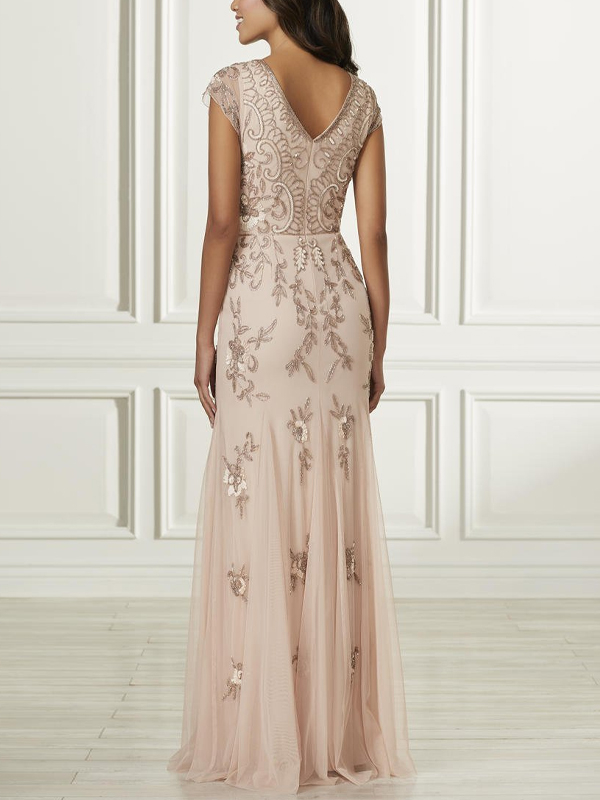 V-neck short-sleeved mesh sequin maxi dress