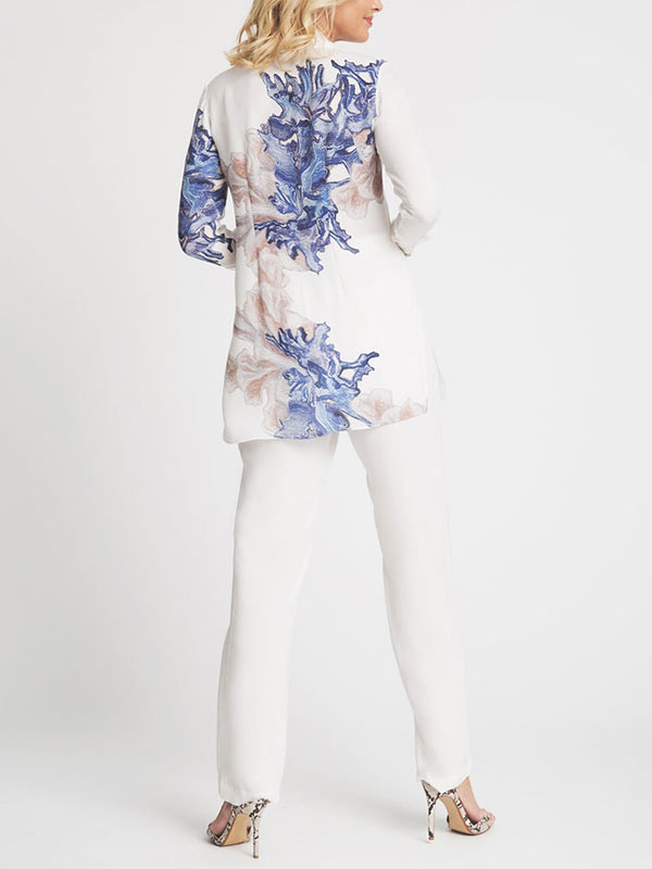 Vintage Print Blouse Elegant Ladies Suit