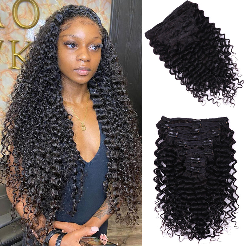 Deep Wave Clip-Ins Hair Extensions Clip In Human Hair Extensions 8 Pieces/Set