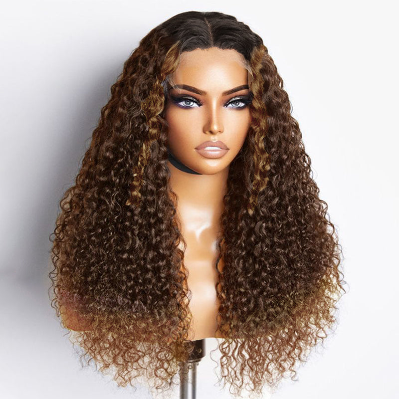 Wear & Go | Curly Wave Dark Brown to Chestnut Brown Wig Pre-Bleached Glueless Wig Invisible Lace Wig Dome Cap Wigs