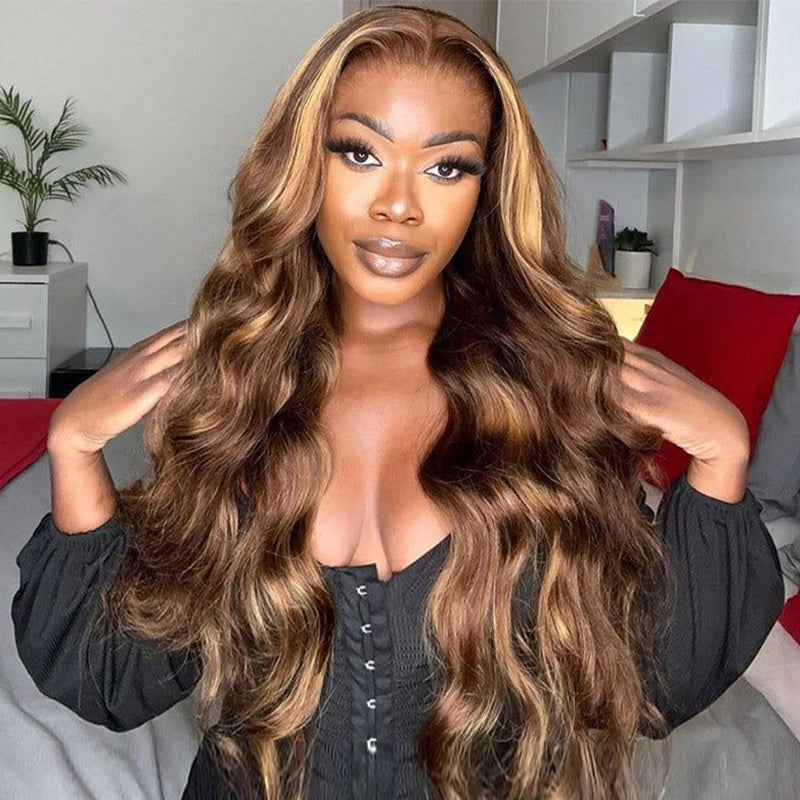 Wear & Go | Glueless P4/27 Highlight Body Wave 9x6 Lace Glueless Wig Pre Bleached Human Hair Wig