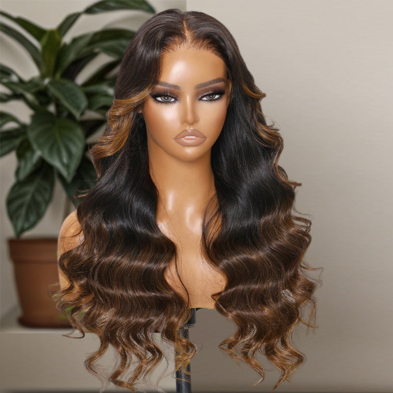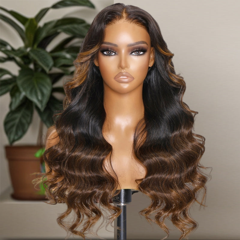 Wear & Go | Dark Hair to Brown Glueless Ombre Wig Light Brown Loose Body Wave Pre-Bleached Lace Wig