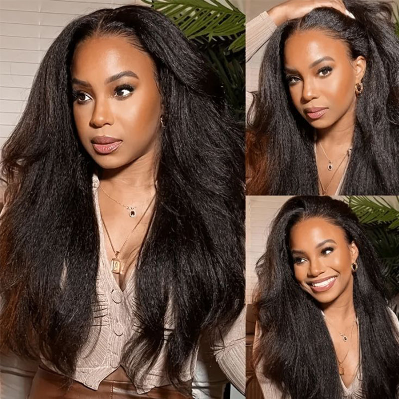 • Wear & Go | Pre-Bleached Glueless Invisible Lace Wig 5x5/7x5/9x6 Kinky Straight Dome Cap Wigs
