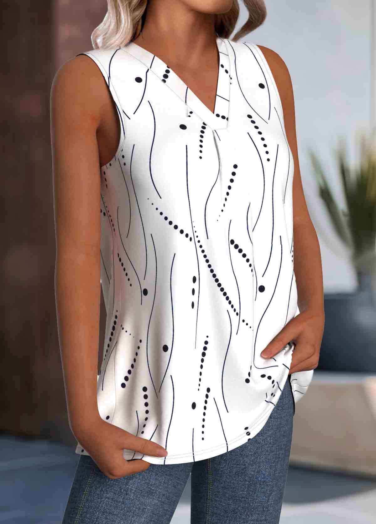 White Lightweight Polka Dot Sleeveless V Neck Tank Top