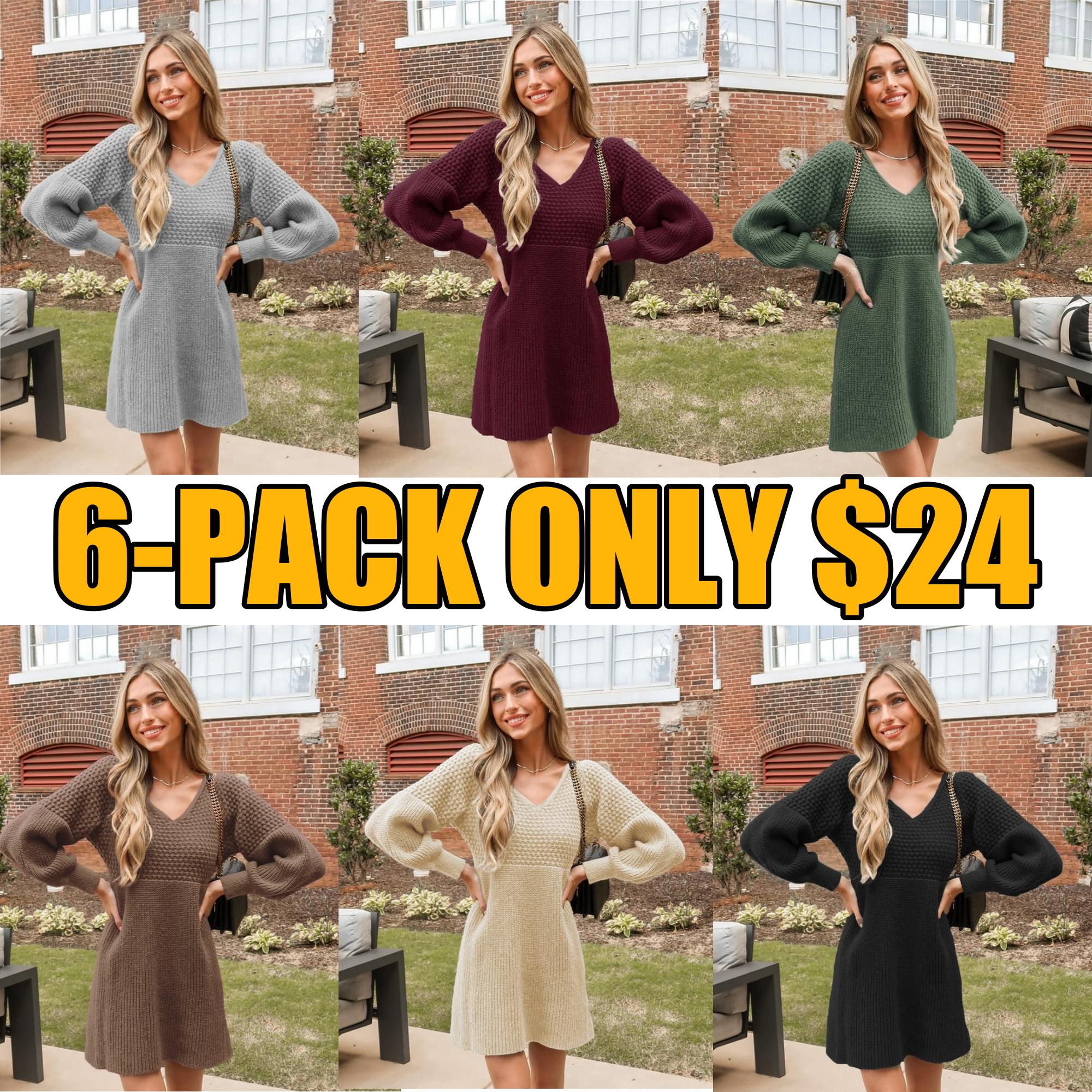 Key Features: Women’s V-neck pullover sweater dress, solid coffee color, long sleeve, loose fit, 2025 trendy textured design.