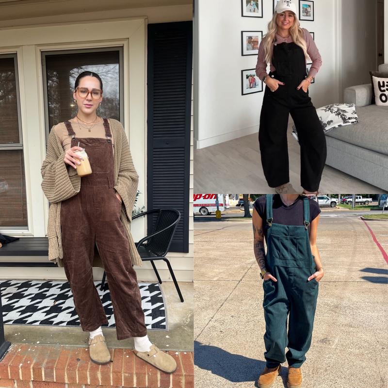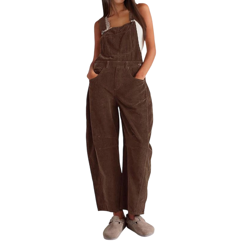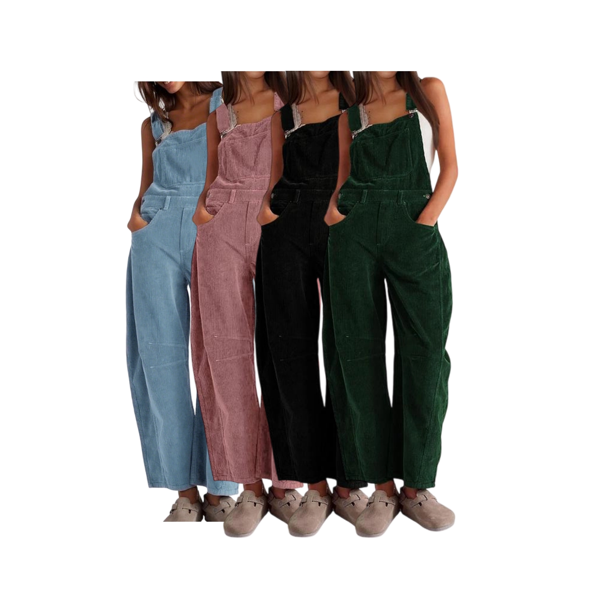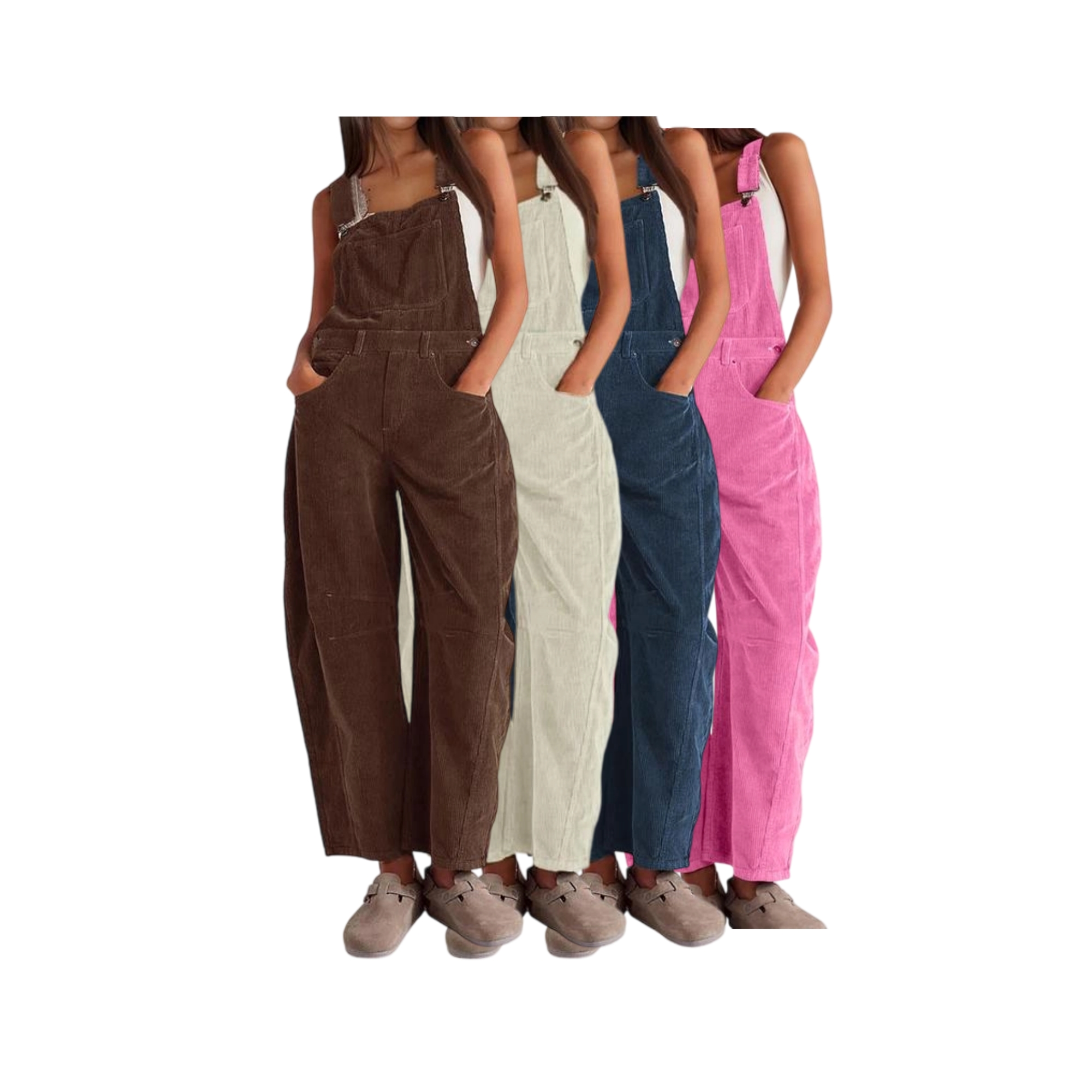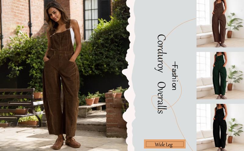 • Women's Corduroy Overalls Barrel Wide Leg Bib Pants