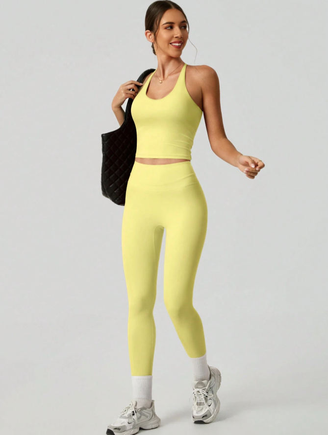 • Women's Crisscross Back Tank & High-Waist Butt-Lift Leggings Set