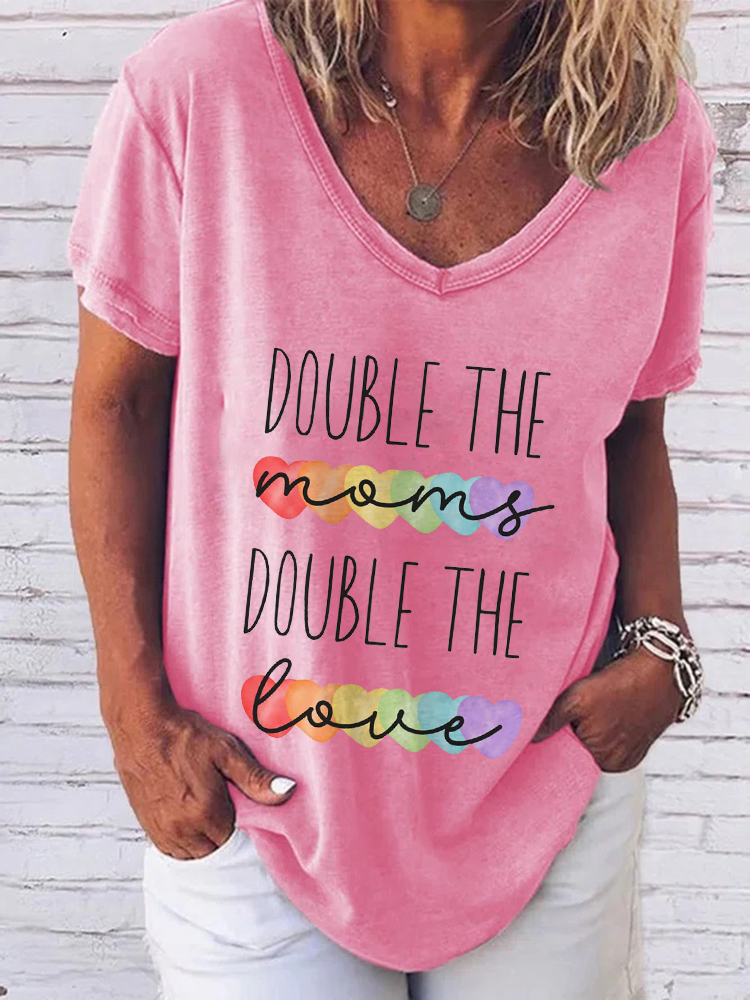 Women'S Double The Moms Double The Love V-Neck Short-Sleeved T-Shirt