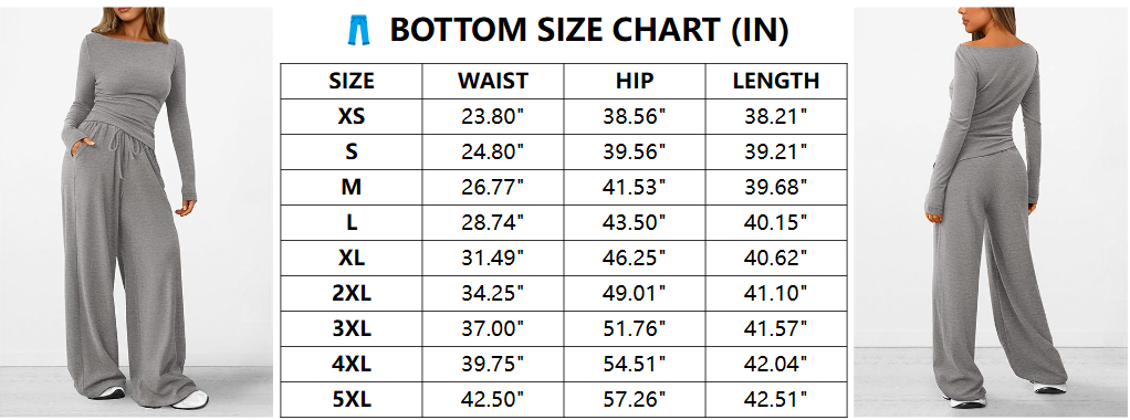 • Womens Sets 2 Piece Outfits Feature an Asymmetrical Long Sleeve T Shirt and Relaxed Fit Wide Leg Pants for a Trendy Style. This Lounge Wear Set Feels Gentle and Smooth against your Skin, Providing you with a Cozy and Comfortable Experience.Please See The Size Chart Details Before Ordering