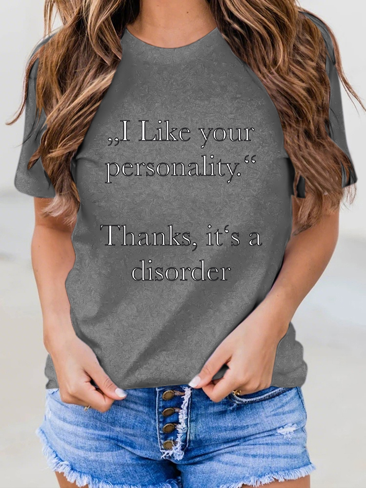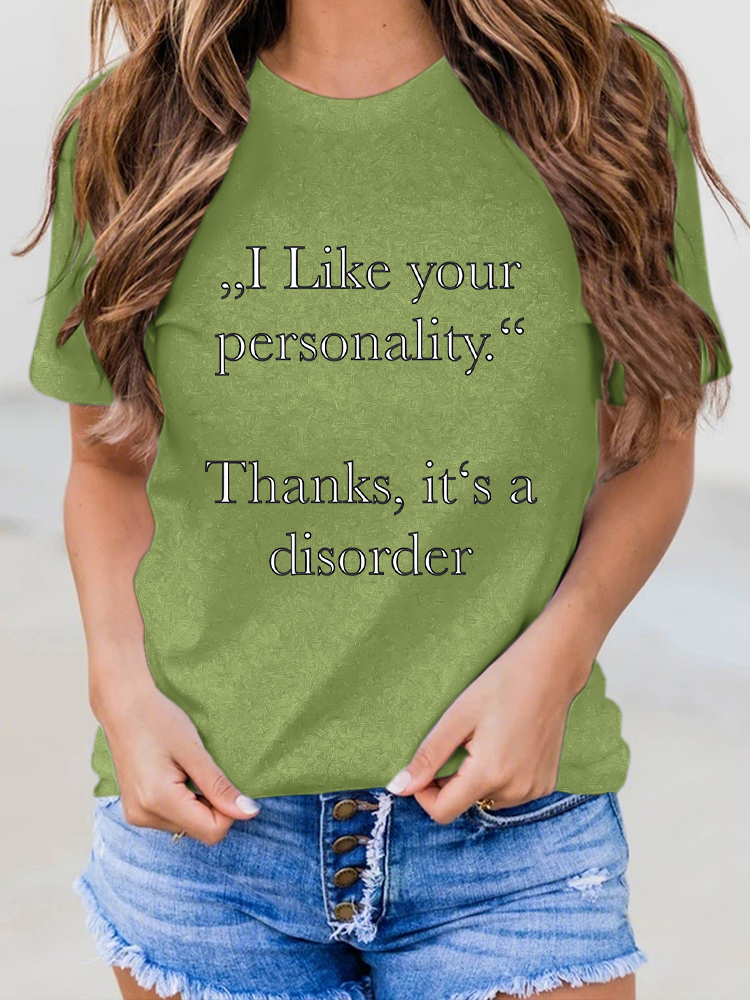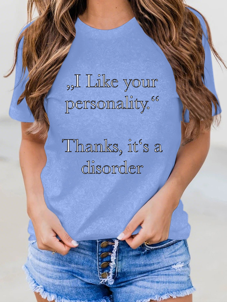 Women'S I Like Your Personality Thanks, It'S A Disorder Round-Neck Short-Sleeved T-Shirt