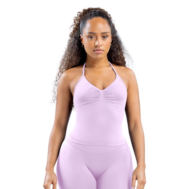 True To SizeIf between sizes | Size down for a firmer fit. Size up for a more relaxed fit Product FeaturesFeaturesButtery soft fabricHalter neckOpen backUnderbust seam for supportRemovable bra pads 66% Nylon | 33% ElastaneFit - True to Size