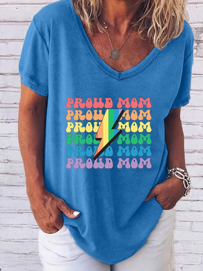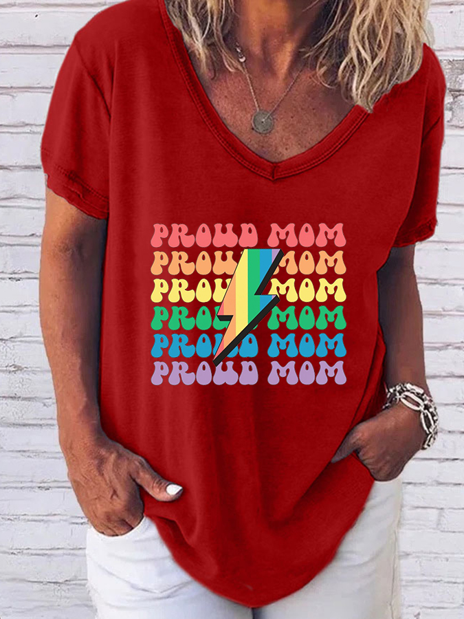 Women'S Pride Month Pride Mom V-Neck Short-Sleeved T-Shirt