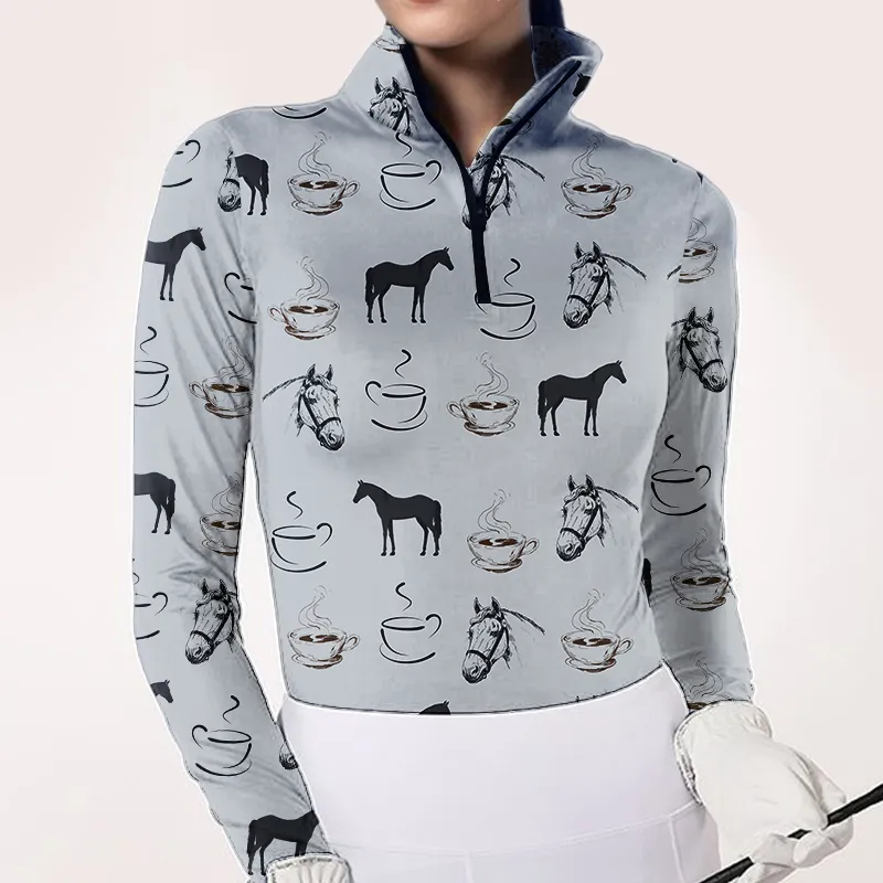 Women's Riding Style Horse&Coffee Print Long Sleeve Casual Shirt