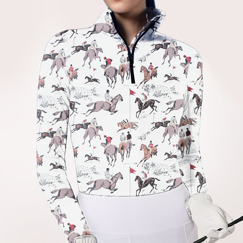 Women's Riding Style Horse Riders Print Long Sleeve Casual Shirt