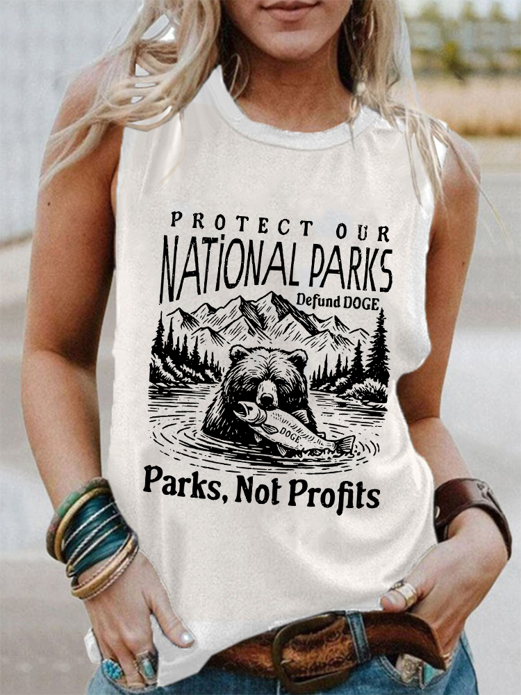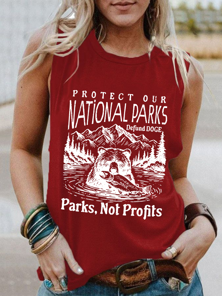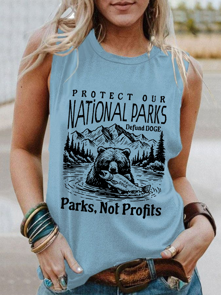 Women'S Round-Neck Sleeveless Vest With Protect Our National Parks Prints