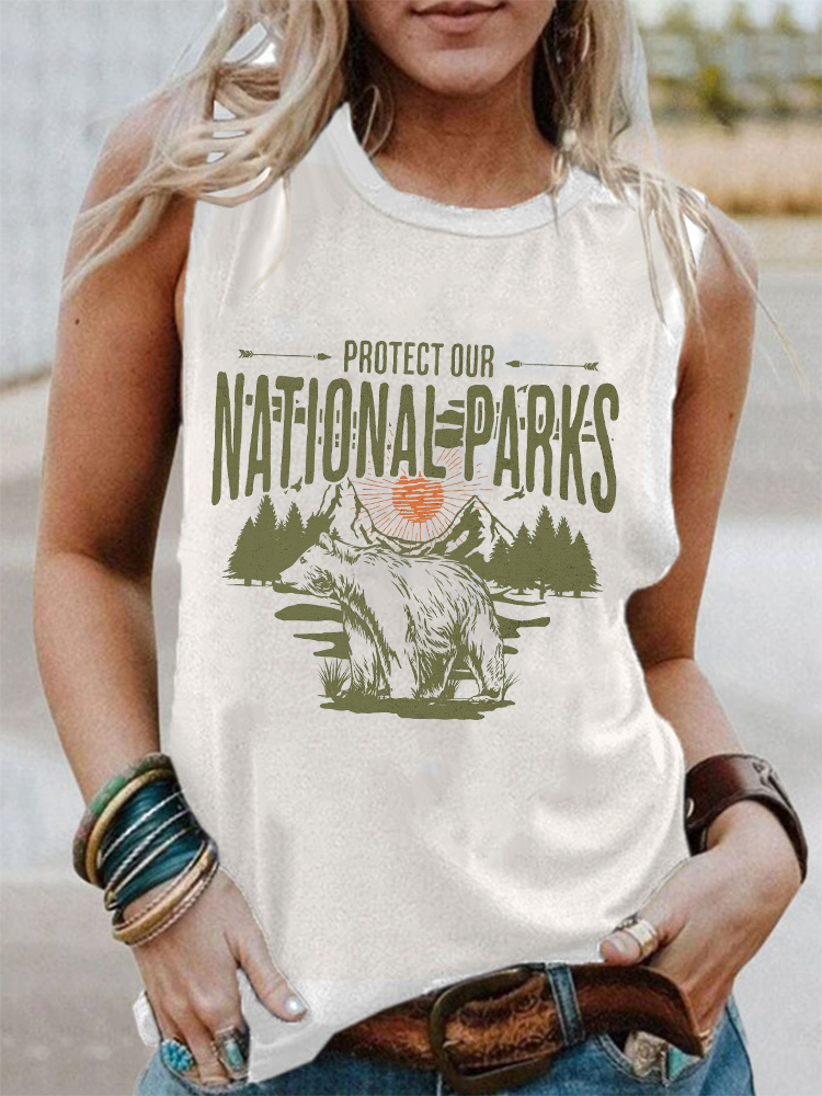 Women'S Round-Neck Sleeveless Vest With Protect Our National Parks Prints