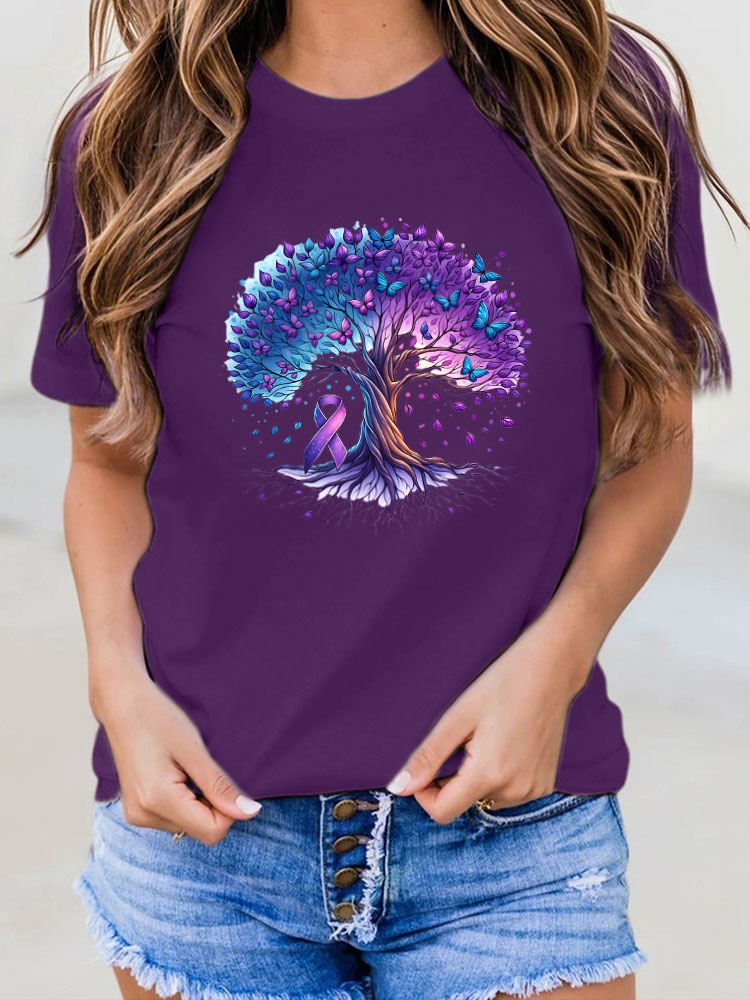 Women'S Round-Neck T-Shirt Alzheimer'S Awareness Butterfly Tree Prints