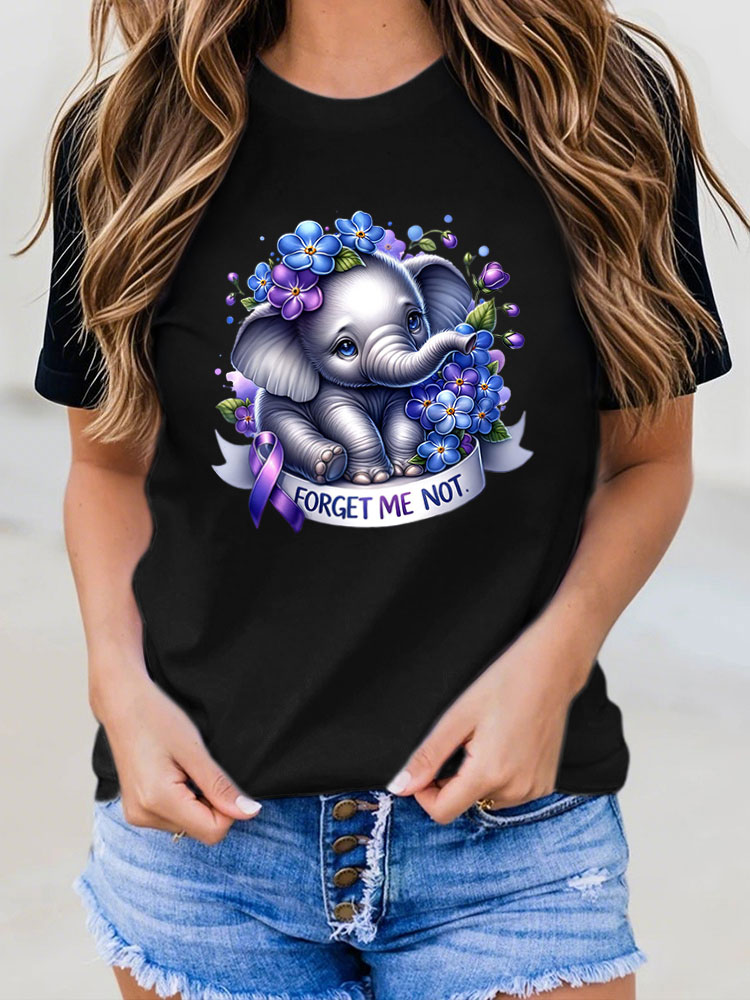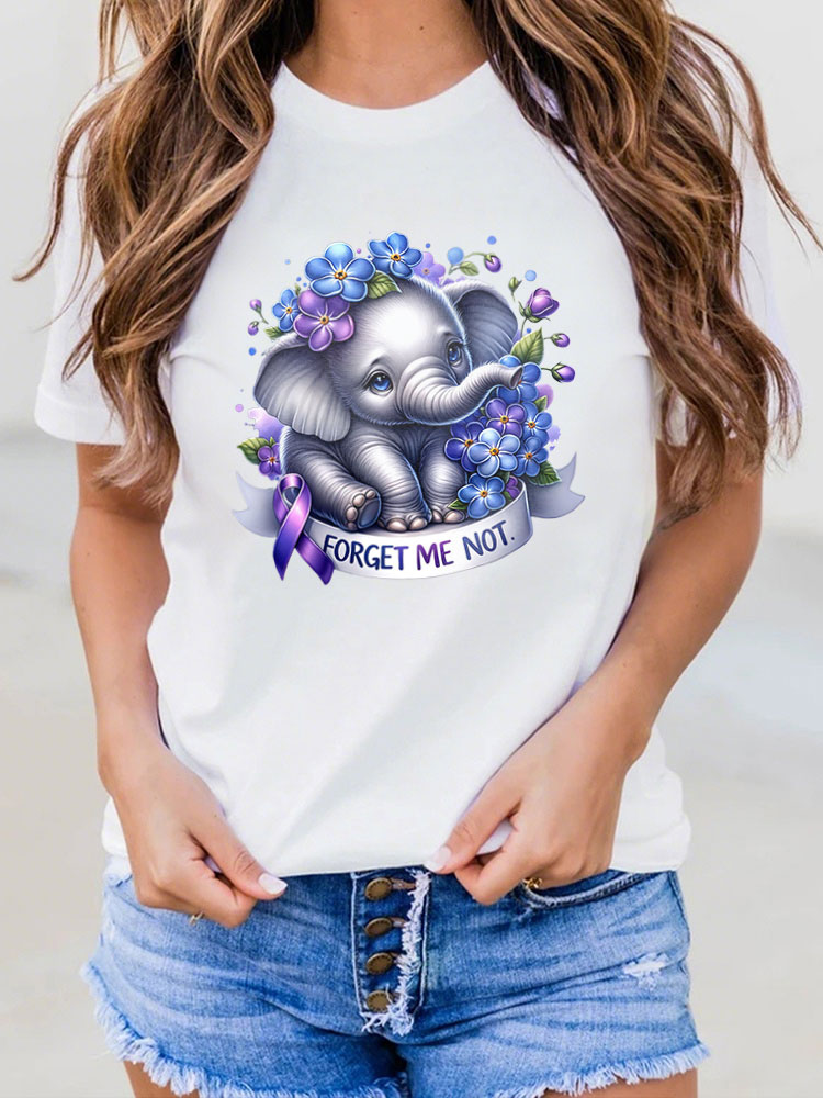 Women'S Round-Neck T-Shirt Forget Me Not Alzheimer'S Awareness Prints