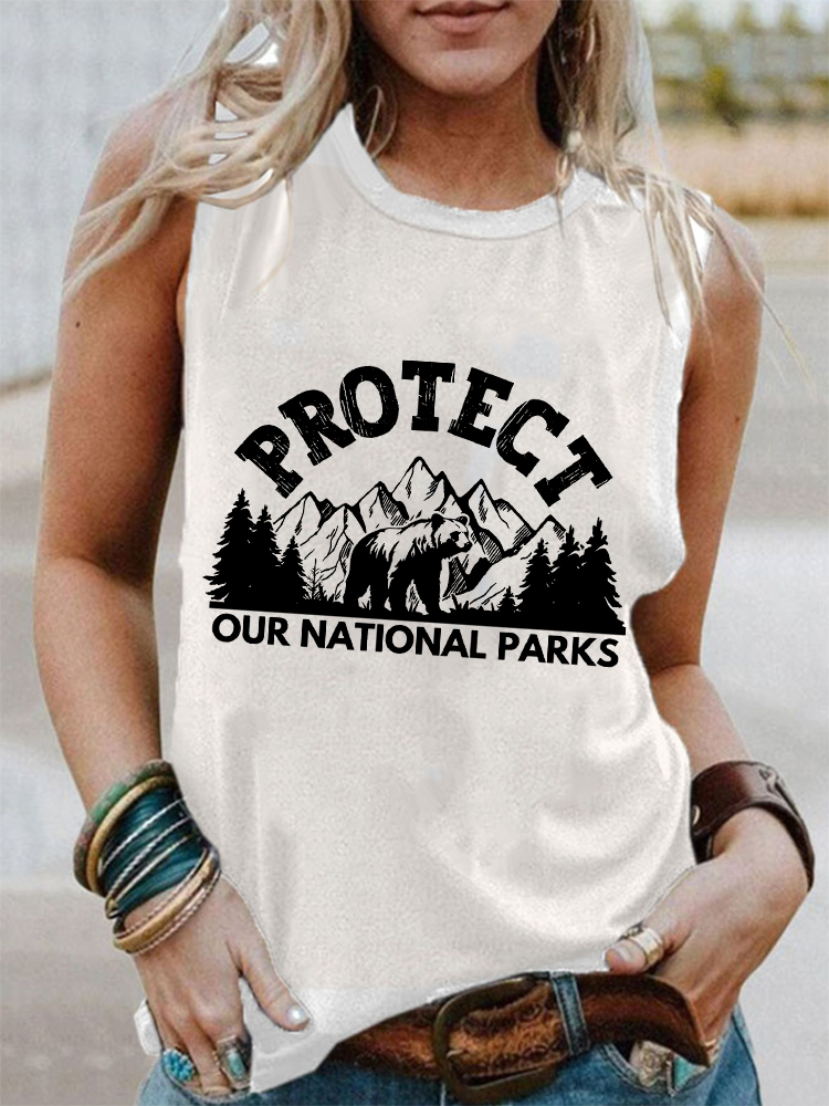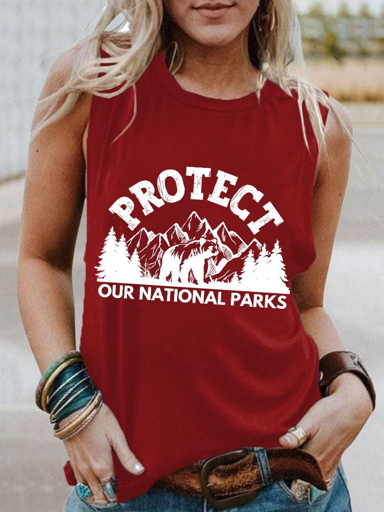 Women'S Round-Neck Sleeveless Vest With Protect Our National Parks Prints