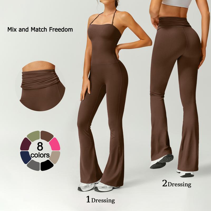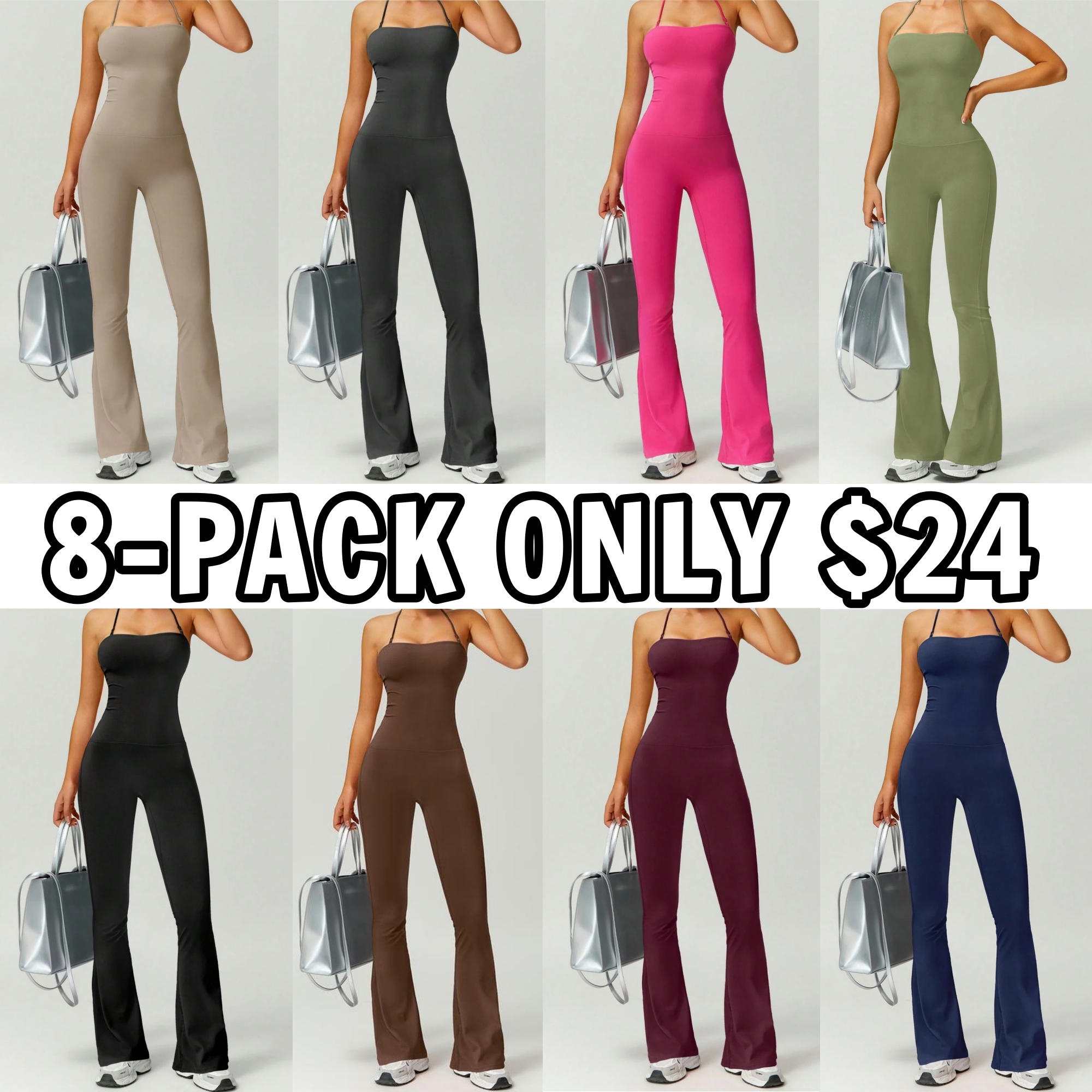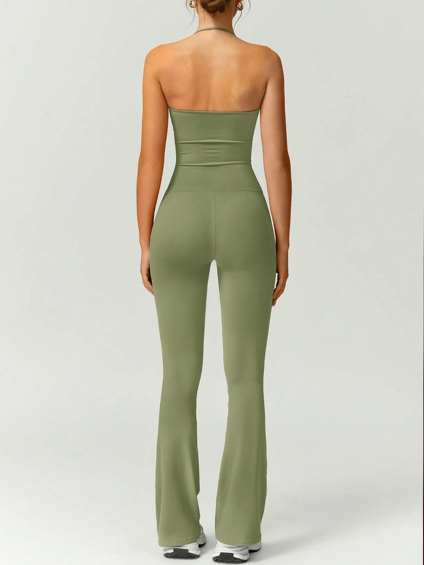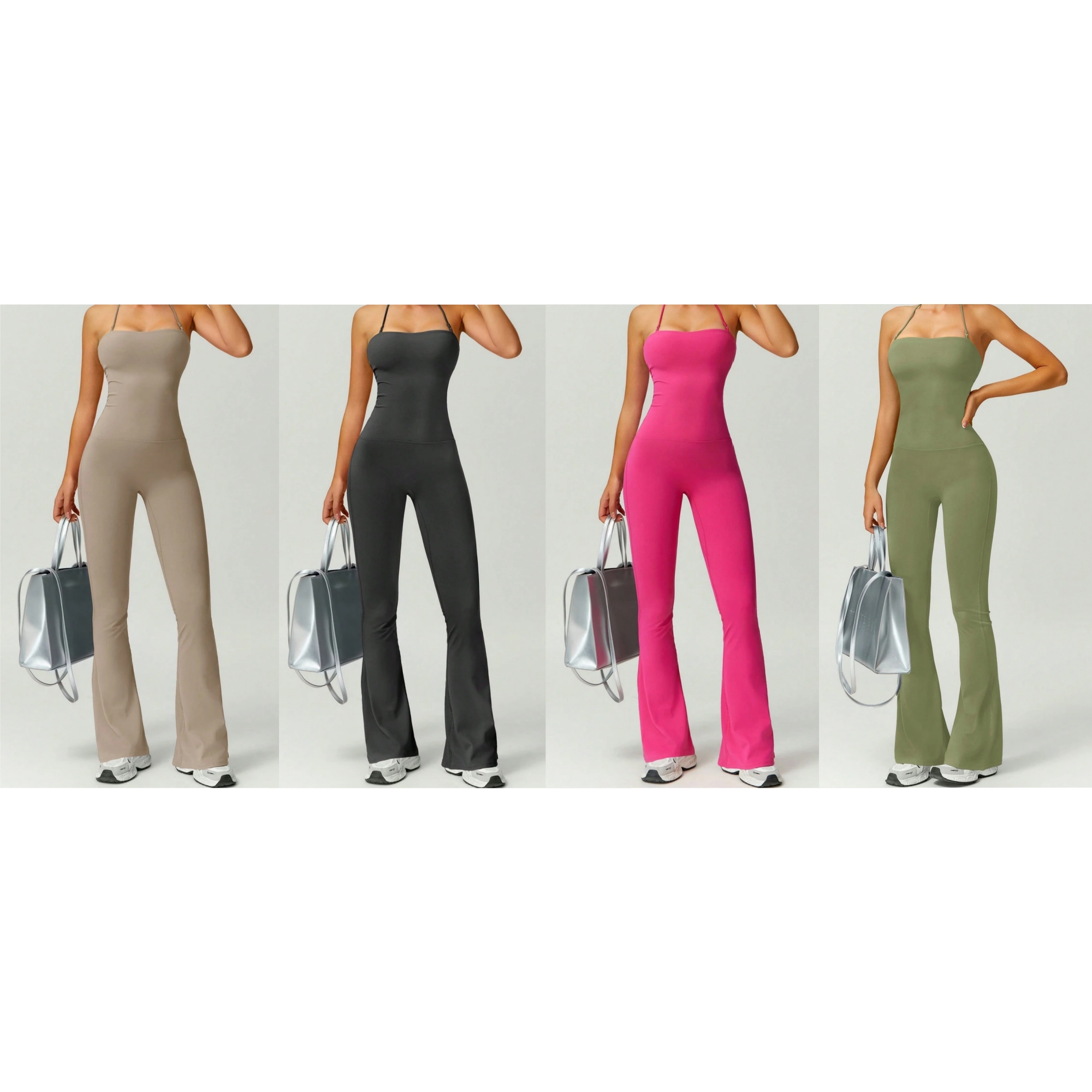 【Athletic Elegance】: Elevate vour workout with the Women's Backless Halter Neck Sports Jumpsuit. Its sleek, backless design merges performance with fashion.