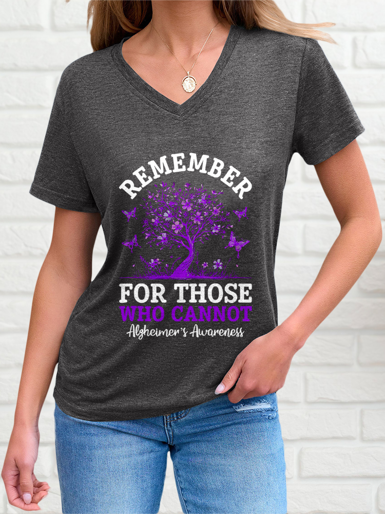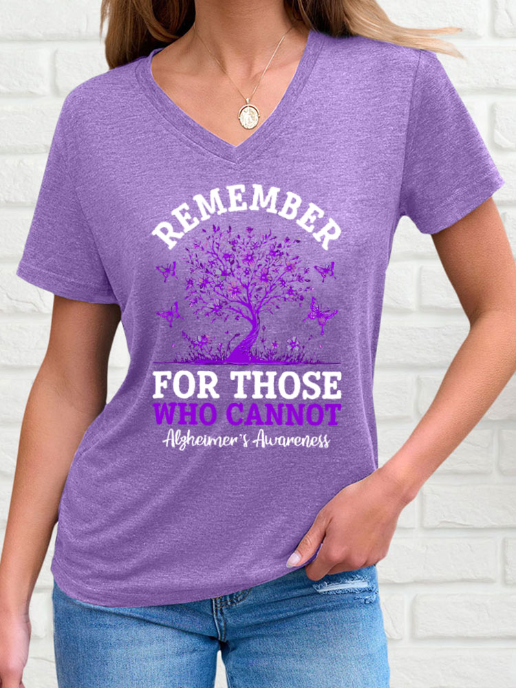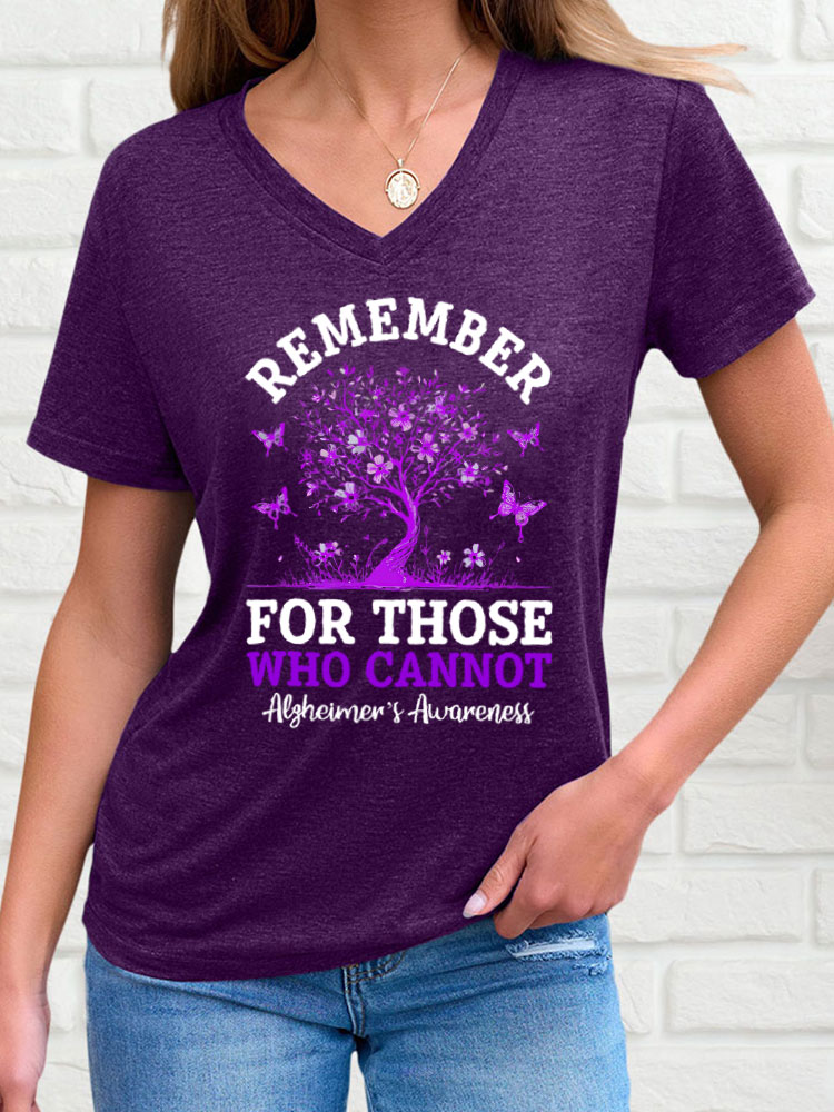 Women'S Short-Sleeved T-Shirt Remember For Those Who Cannot Alzheimer'S Awareness Butterfly Prints