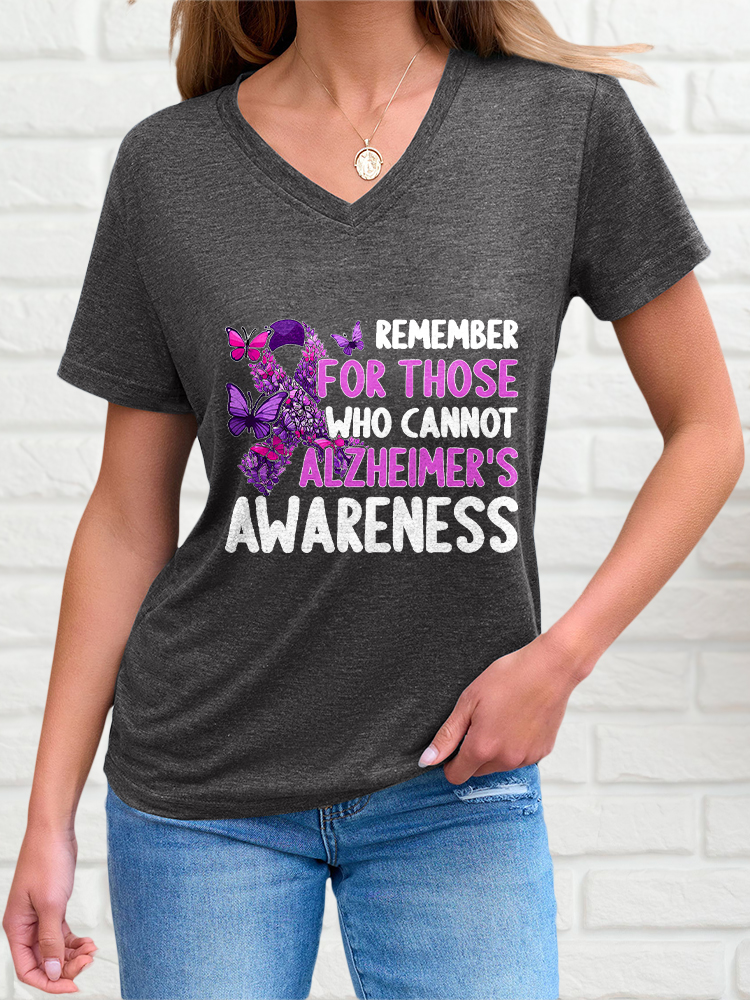 Women'S Short-Sleeved T-Shirt Remember For Those Who Cannot Alzheimer'S Awareness Prints