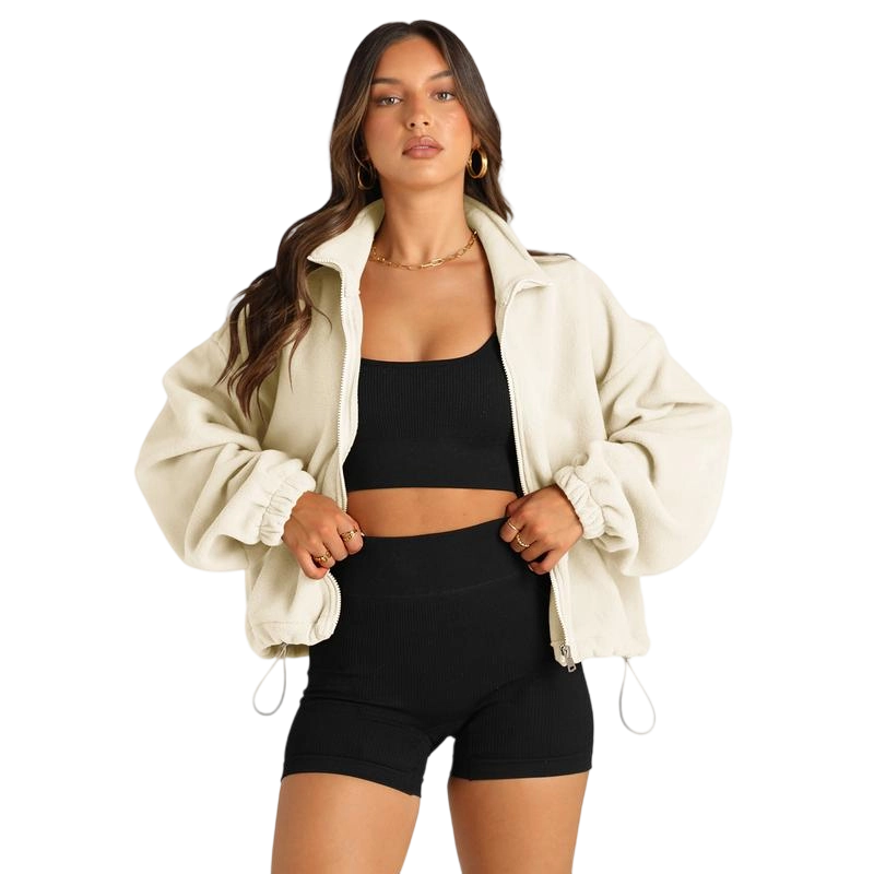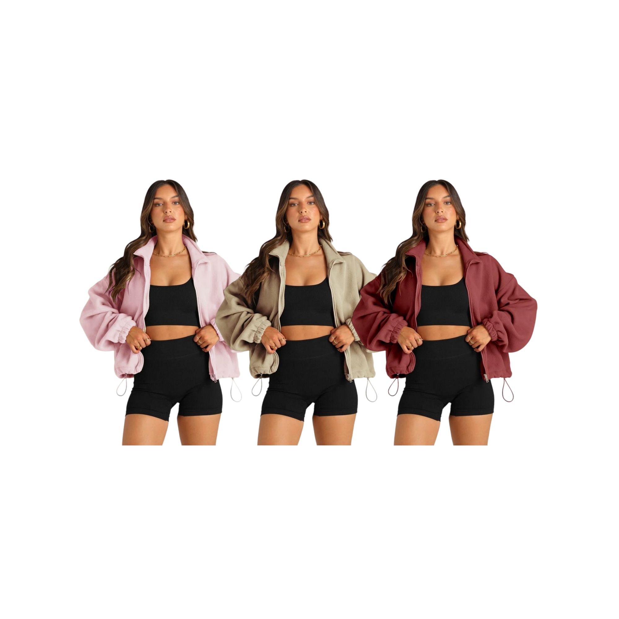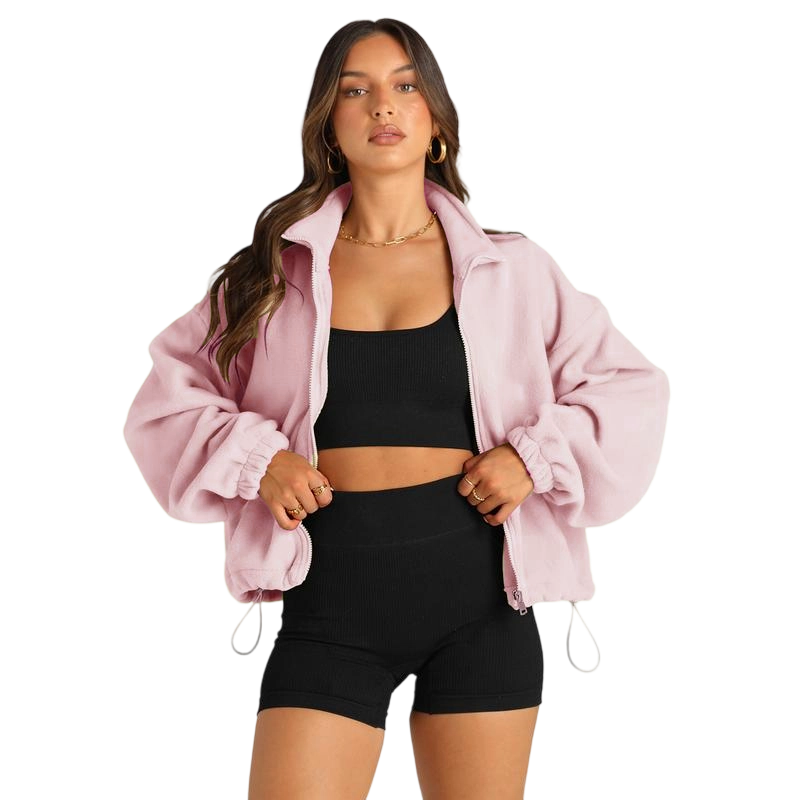 Women's Winter Stand Collar Sherpa Crop Coat fits nicely over a yoga