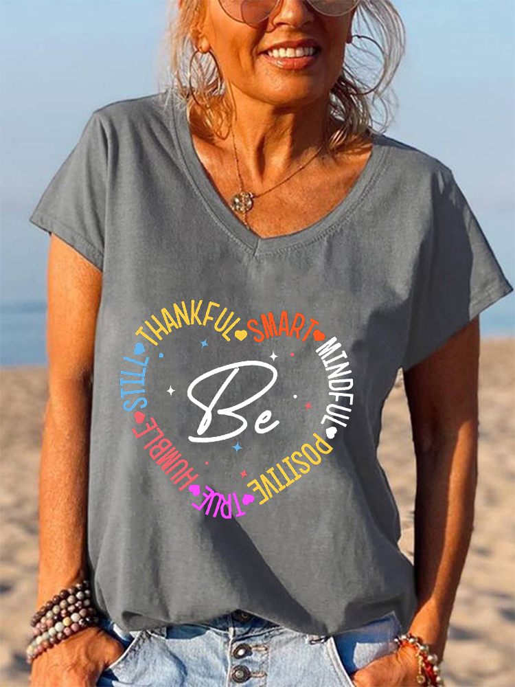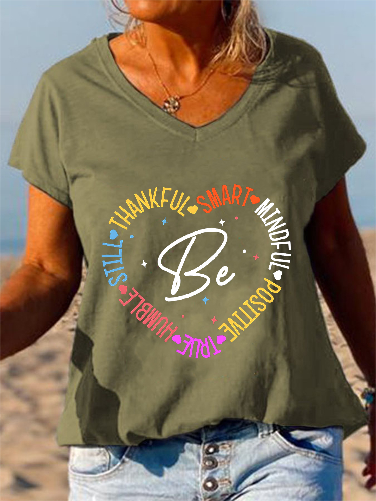 Women'S V-Neck Short-Sleeved T-Shirt Be Thankful Smart Mindfull Positive True Humble Still Prints