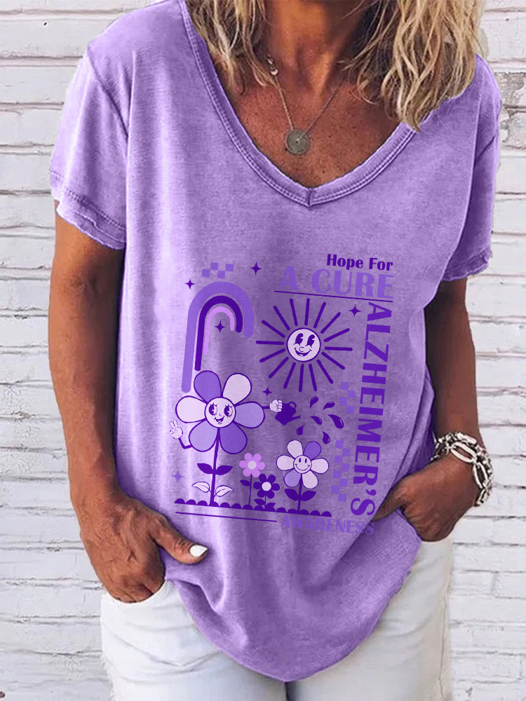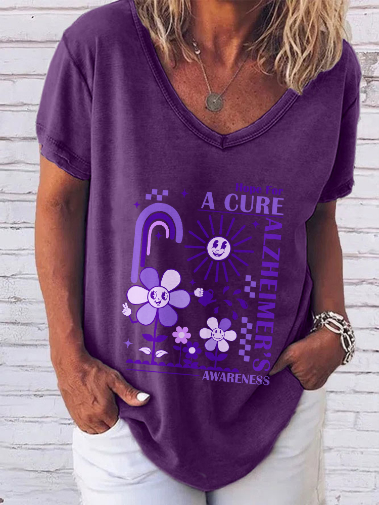 Women'S V-Neck Short-Sleeved T-Shirt Hope For A Cure Alzheimer'S Awareness Prints