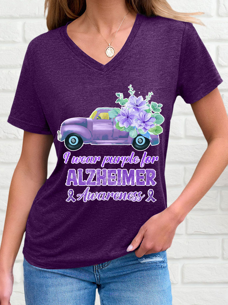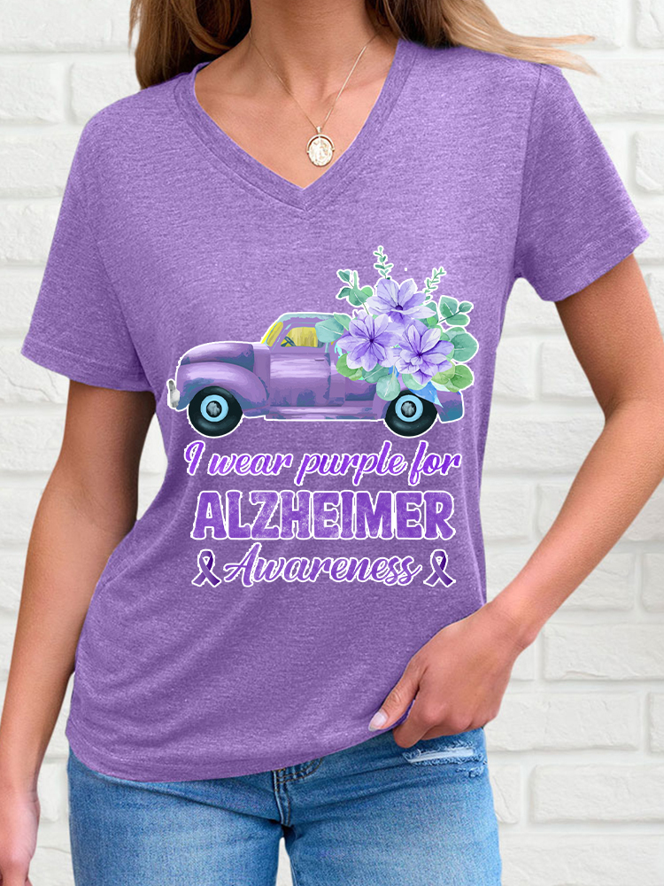 Women'S V-Neck Short-Sleeved T-Shirt I Wear Purple For Alzheimer Awareness Prints