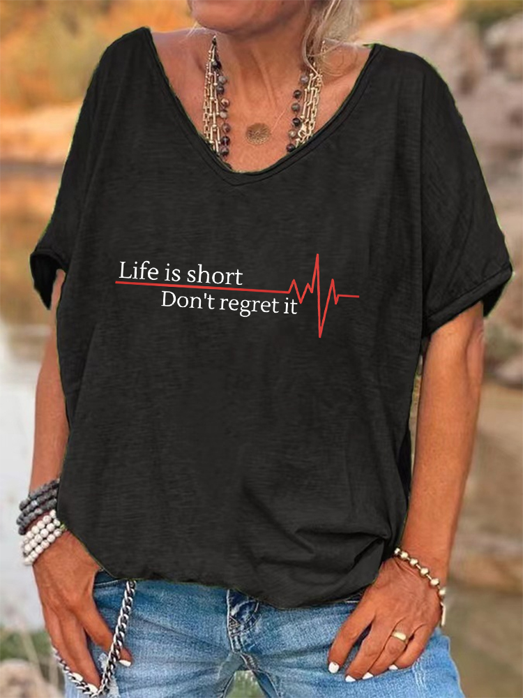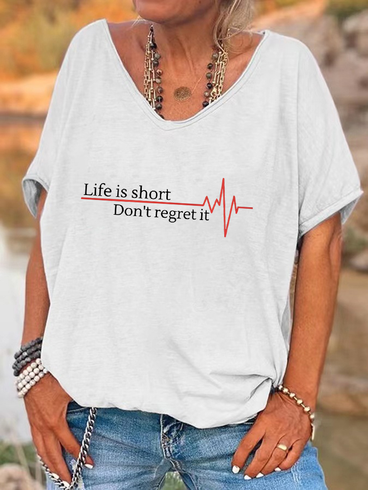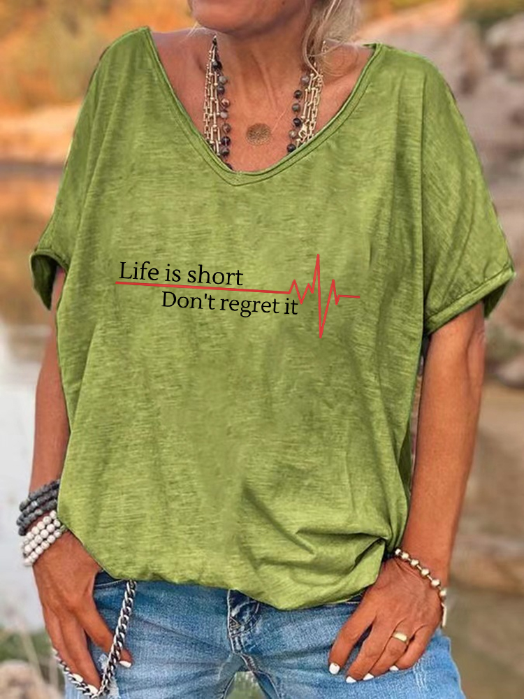 Women'S V-Neck Short-Sleeved T-Shirt Life Is Short Don'T Regret It Prints