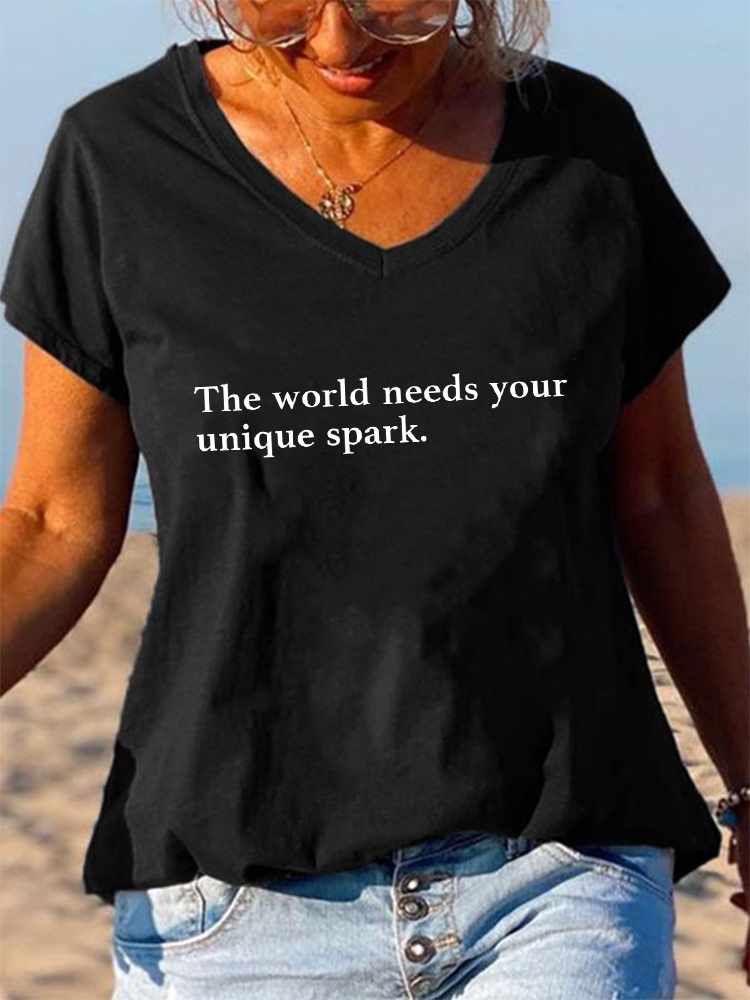 Women'S V-Neck Short-Sleeved T-Shirt The World Needs Your Unique Spark Prints