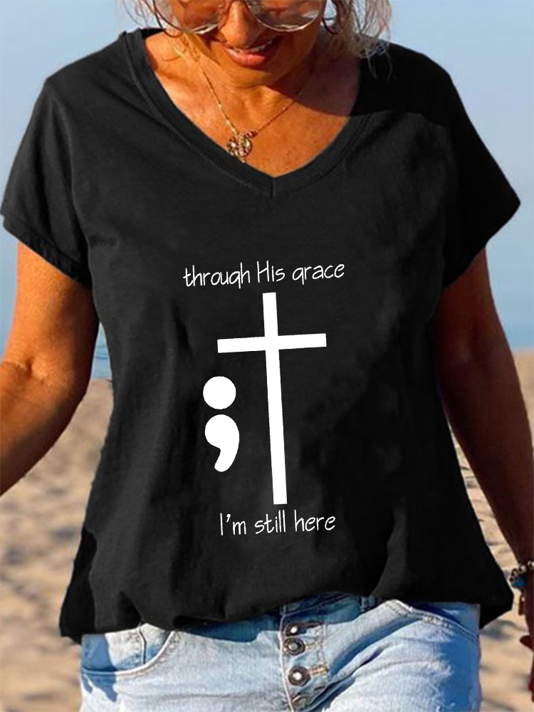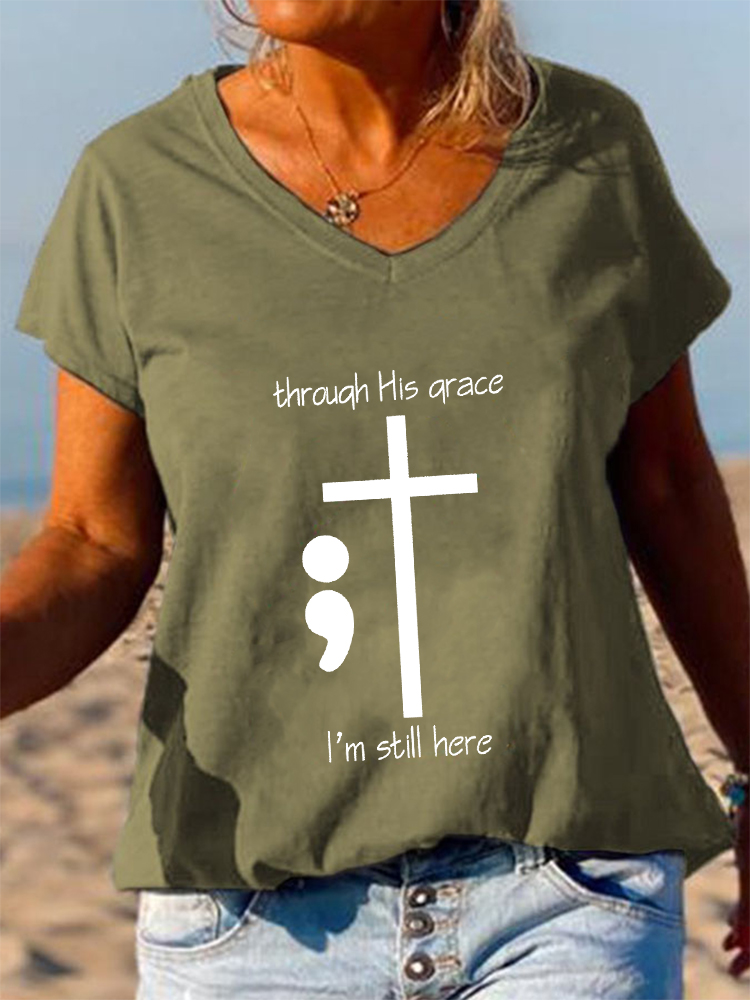 Women'S V-Neck Short-Sleeved T-Shirt Through His Grace I'M Still Here Prints