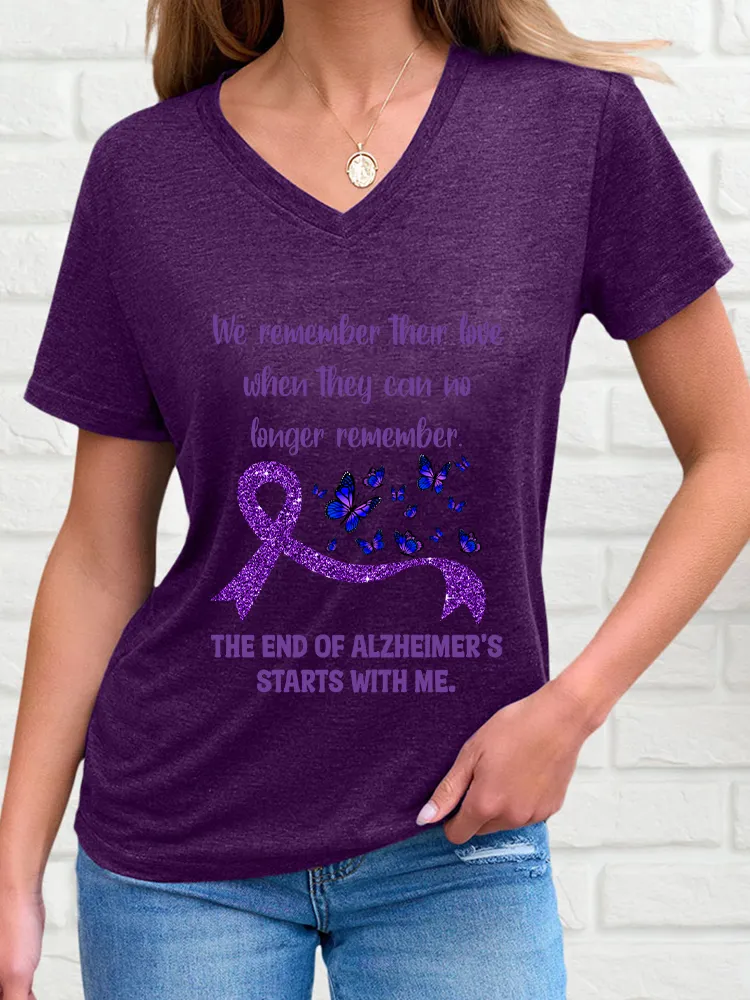 Women'S V-Neck Short-Sleeved T-Shirt We Remember Their Love When They Can No Longer Remember The End Of Alzheimer'S Starts With Me Prints