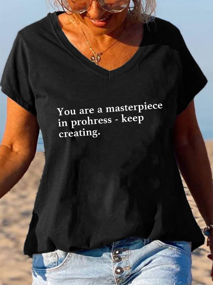 Women'S V-Neck Short-Sleeved T-Shirt You Are A Masterpiece In Prohress - Keep Creating Prints