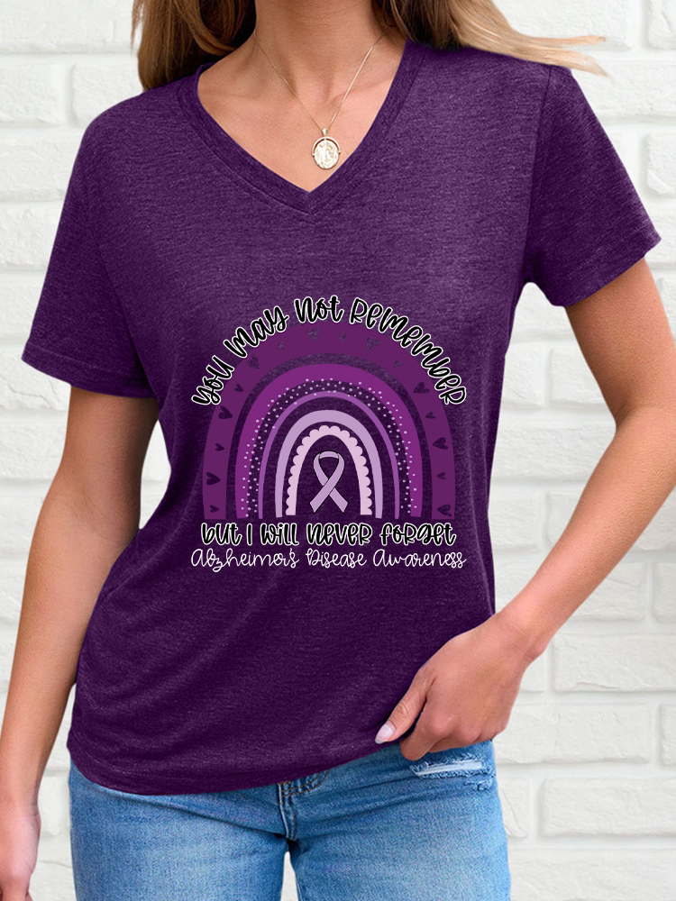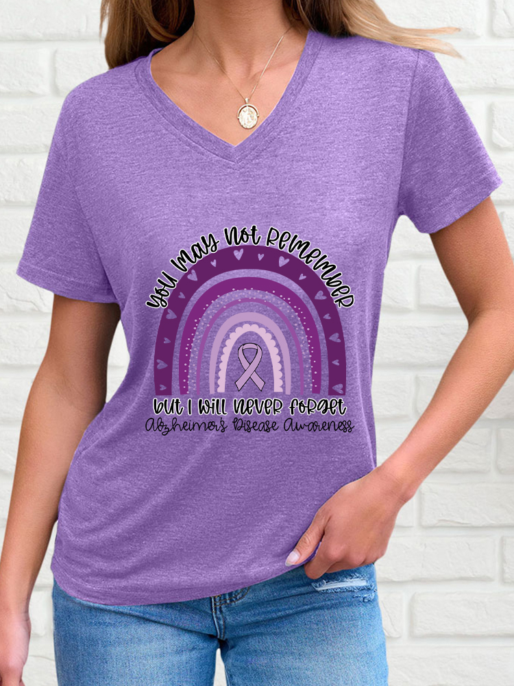 Women'S V-Neck Short-Sleeved T-Shirt You May Not Remember But I Will Never Forget Alzheimer'S Disease Awareness Prints