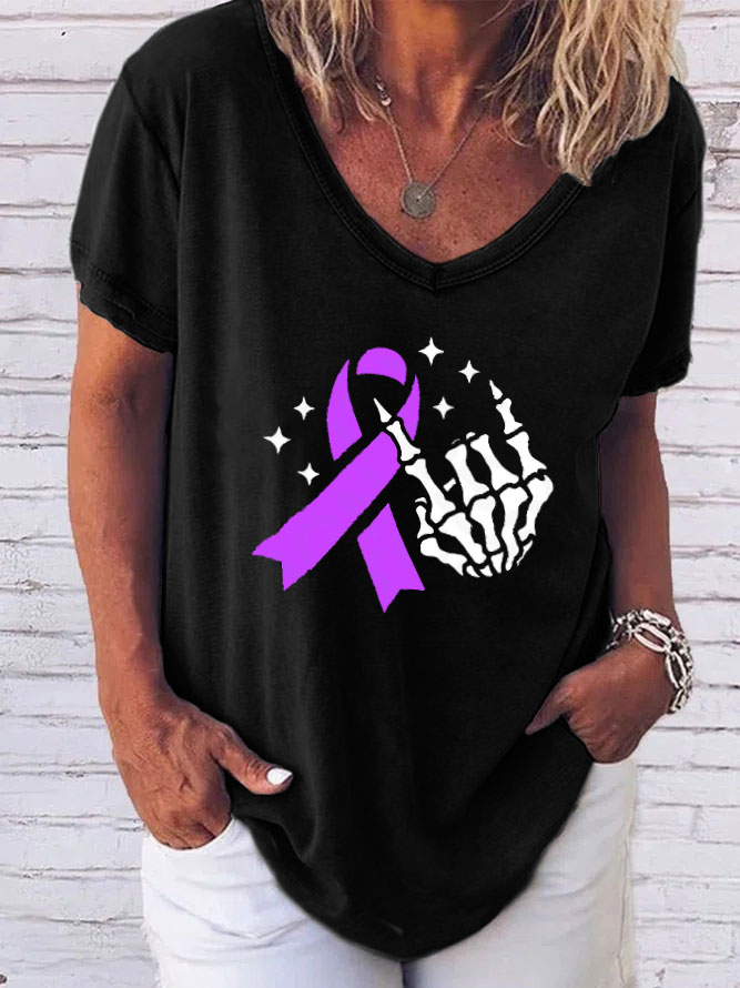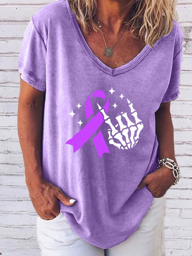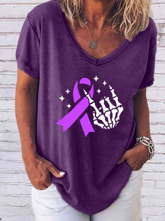 Women'S V-Neck T-Shirt Alzheimer'S Awareness Prints